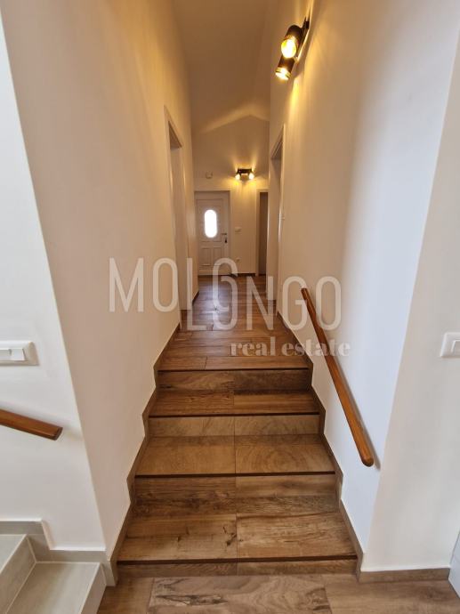 Ova samostojeća kuća odlikuje se modernim dizajnom i kvalitetnim materijalima koji su pažljivo odabrani. Vanjski izgled kuće je šarmantan i dojmljiv, a interijer je uređen s ukusom i pažnjom prema detaljima. Kuća također ima lijepo uređenu okućnicu koja pruža dodatni prostor za opuštanje na otvorenom i mogućnost uređenja prema vlastitim željama.
