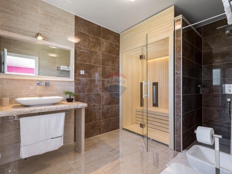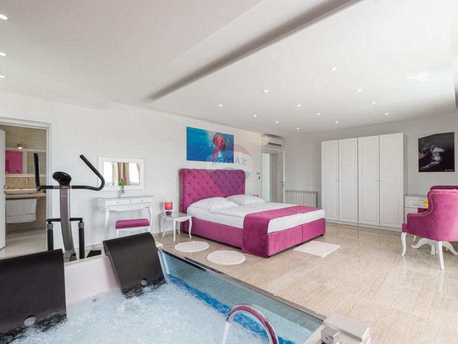 Master room je površine 35m2 ima svoj vlastiti jacuzzi, saunu i terasu sa pogledom na more.