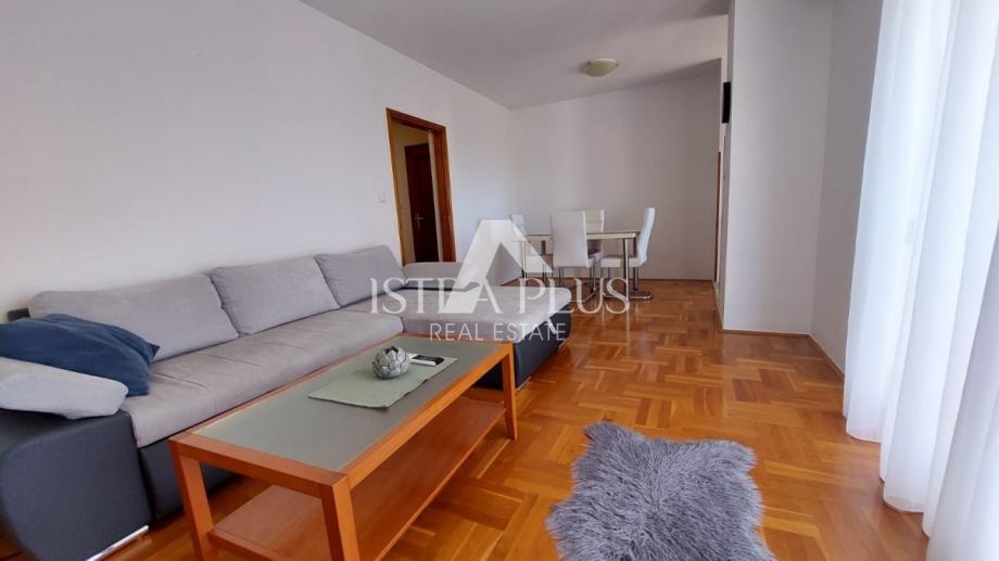 Odlična prilika, stan na prvom katu zgrade, stan ima površinu od 56 m², sastoji se od dnevnog boravka, blagovaonice, kuhinje, natkrivene terase, hodnika, dvije spavaće sobe i kupaonice. Stan se prodaje kompletno namješten, ima pogled na more, klima uređaj, tendu, peć na pelete (peć grije dnevni dio, kupaonicu i spavaću sobu) i jedno parkirno mjesto ispred zgrade. Stan je udaljen cca 3 km od centra Poreča, cca 600 m od mora/plaže i 100 m od stanice gradskog prijevoza.