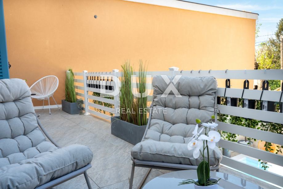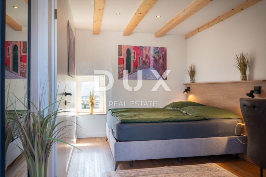 Nedaleko Poreča na prodaju je novoadaptirana kamena kuća površine 150 m2 s balkonom površine 20 m2. Kuća je raspoređena na tri etaže. U prizemlju se nalaze kupaonica i praonica za rublje, dnevni boravak s kuhinjom i blagovaonicom. Prizemlje je moderno namješteno i opremljeno, s podom od epoxy smole. Na katu se nalaze 2 spavaće sobe i kupaonica. Svaka soba ima izlaz na balkon s pogledom na bazen. Na 2. katu je galerija površine 40m2, s dva bračna kreveta.