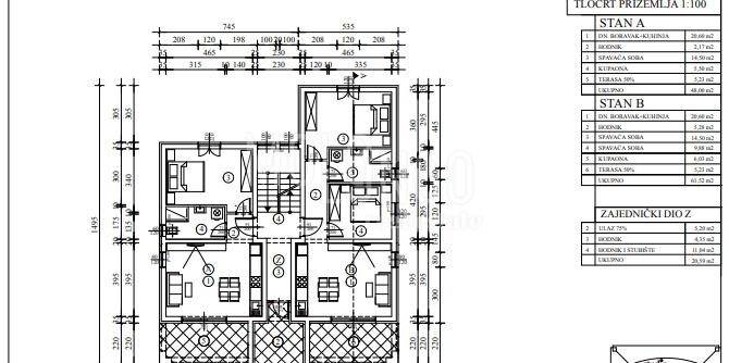 Stan se sastoji od dvije spavaće sobe, dnevnog boravka, kuhinje, hodnika, kupaonice, terase.