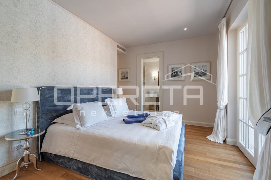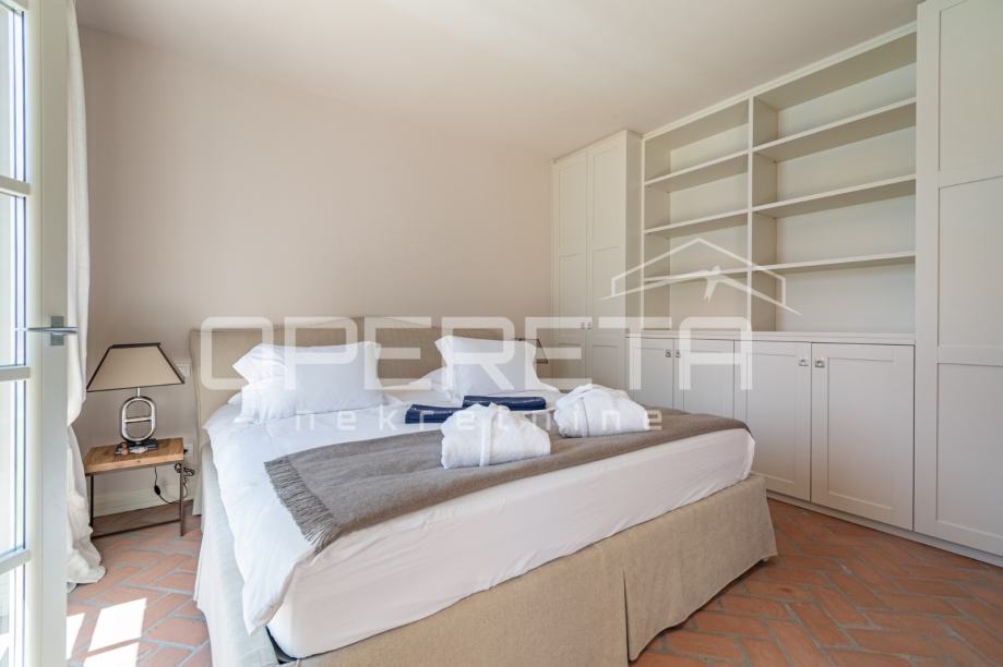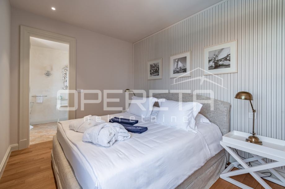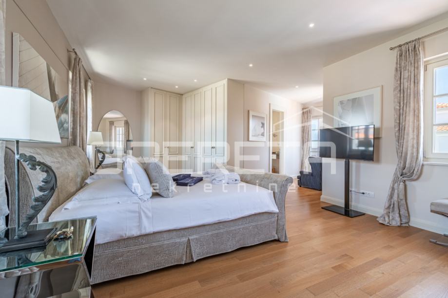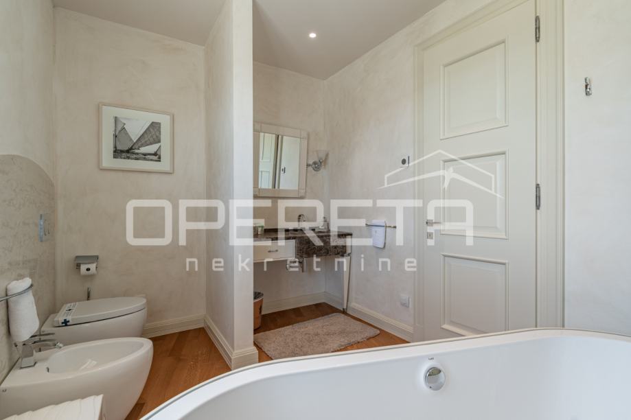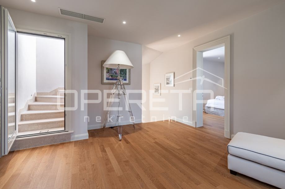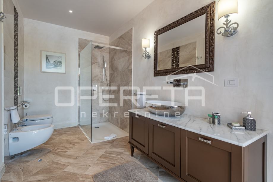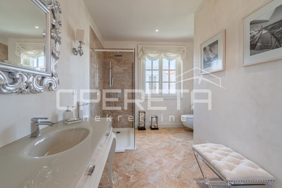 Kamene stepenice vode na prvi kat, gdje su smještene dvije prostrane spavaće sobe, svaka sa svojom luksuznom kupaonicom, nudeći maksimalnu privatnost i komfor. Posebna pogodnost ove vile je i predivna krovna terasa s koje se pruža očaravajući pogled na more, idealna za jutarnju kavu ili večernja druženja pod zvijezdama. ( ako postoji instalacija za jacuzzi možemo i taj dio dodati)