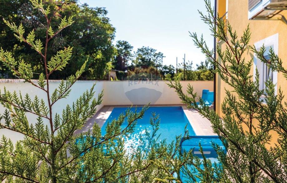 Prodaje se lijepa dvojna kuća s bazenom u lijepom manjem mjestu u okolici Poreča. Kuća je raspoređena na 3 etaže koje su povezane unutarnjim stepeništem. Ima 3 spavaće sobe i 2 kupaonice na katovima, prostrani dnevni prostor u prizemlju te okućnicu s bazenom od 24 m2 i natkrivenu terasu s roštiljem.