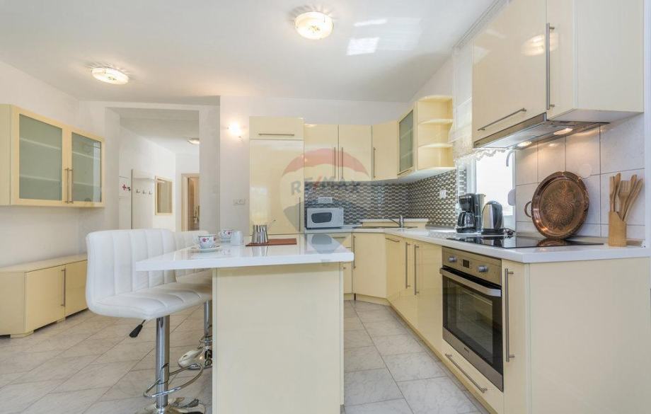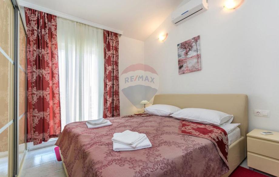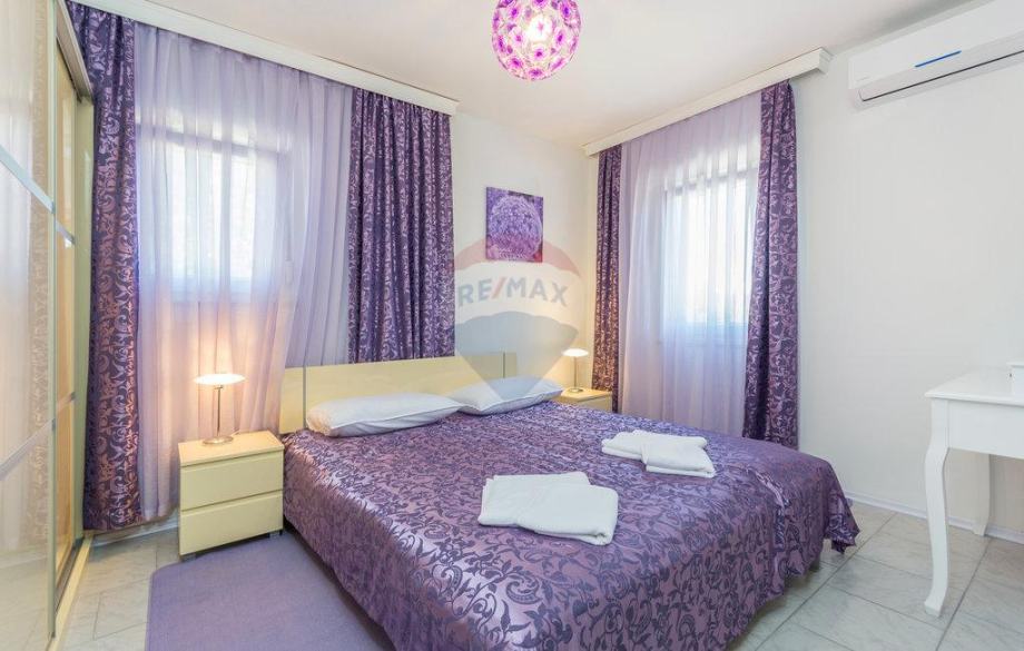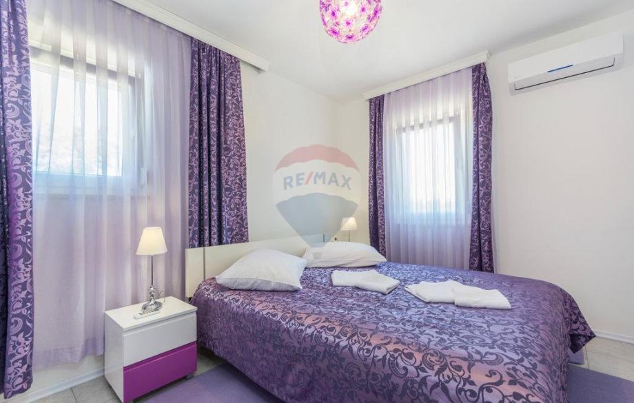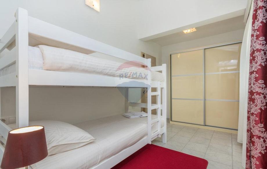 U oba dijela su po 4 komforne spavaće sobe s kupaonama te kuhinja-blagovaona i dnevni boravak. Uglavnom, jako elegantna nekretnina s jasnim ciljem zarade od turističkog iznajmljivanja s prihodima od 20 do 25 tisuća Eura po sezoni, po objektu. Oglašena cijena je za cijeli dvojni objekat, a ukoliko se kupuje samo jedan dio kuće, cijena je 375000 Eura.