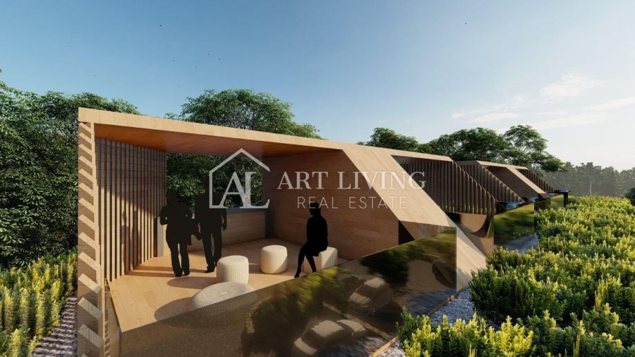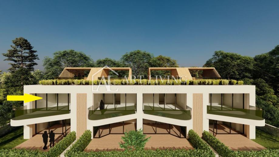 Stan površine 65 m2 sastoji se od dnevnog boravka sa kuhinjom i blagovaonicom otvorenog tipa, 1 spavaće sobe, spremišta, kupaonice, hodnika i natkrivene terase. Stanu pripada i prostrana krovna terasa površine 31 m2, na kojoj se nalazi wc a po želji može se postaviti i ljetna kuhinja te jacuzzi koje uz prekrasan pogled na prirodu i prelijep istarski krajolik.