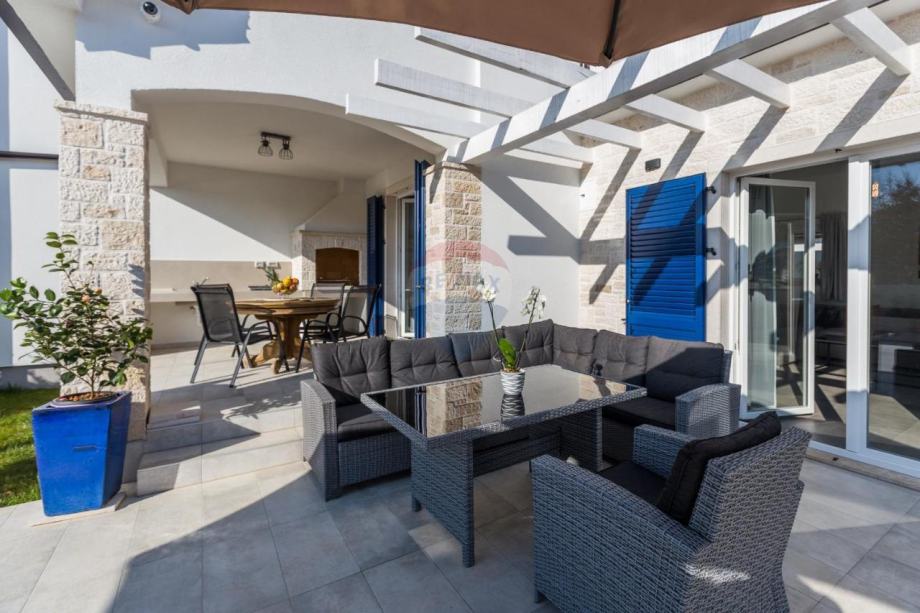 Uređenu okućnicu od 630 m2 krasi divan zeleni vrt, bazen od 32 m2 sa sunčalištem, ljetna kuhinja, i te ostava.