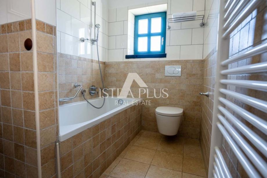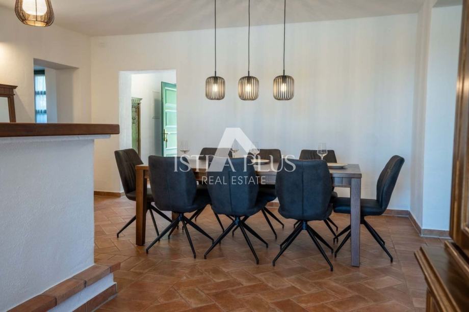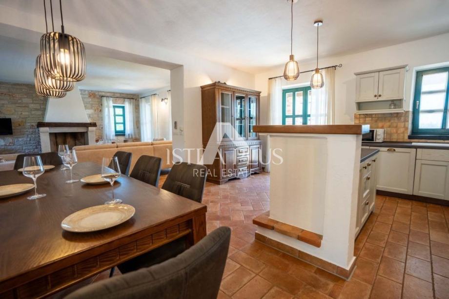 Vila odiše istarskim šarmom – građena je od autohtonog kamena, s drvenim gredama, toplim bojama i pažljivo biranim detaljima koji pružaju osjećaj doma i opuštanja. Prostrano dvorište, bujna mediteranska vegetacija i privatni bazen čine je idealnim mjestom za obiteljski odmor ili miran bijeg od svakodnevnice.