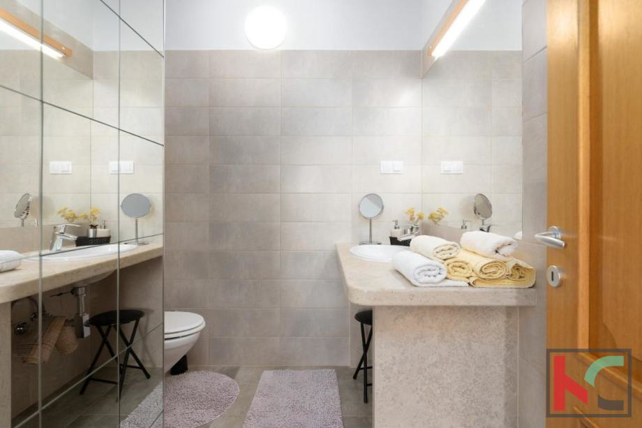Grijanje i hlađenje omogućeno je putem klimatskih jedinica i kamina u dnevnom boravku te je također izvedena kompletna priprema za podno grijanje kroz cijelu vilu.