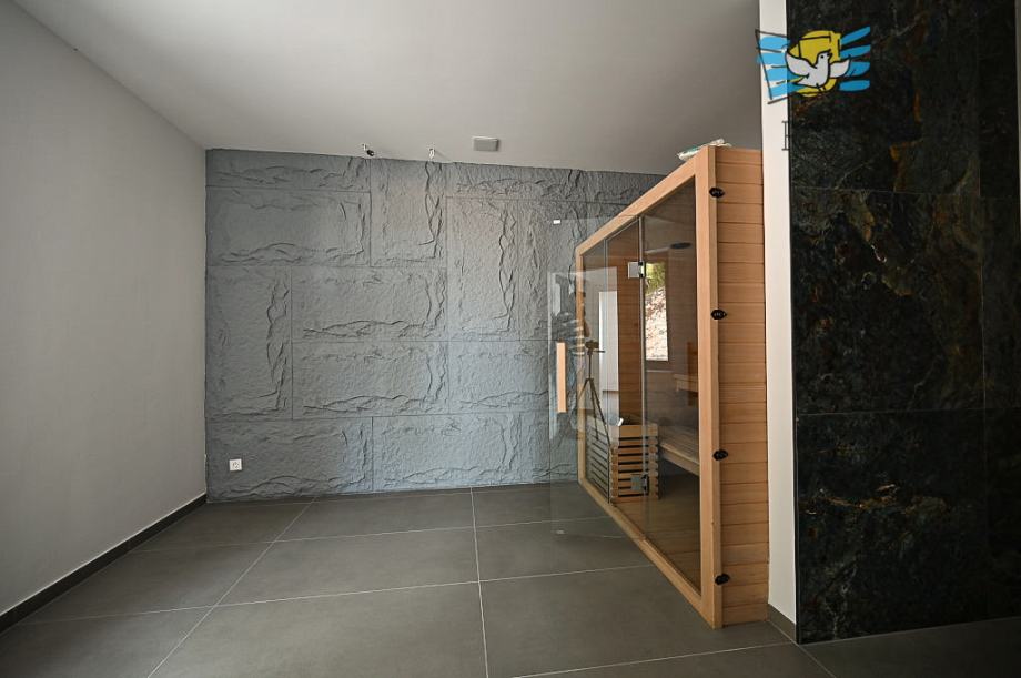U pogledu opreme i sigurnosti, vila nudi smart home sustav, video nadzor, alarm, protuprovalna vrata te satelitsku TV. Podno grijanje i klima uređaj omogućuju ugodnu temperaturu tijekom cijele godine, a sauna dodatno doprinosi osjećaju luksuza. Posebna pogodnost je punionica za električni automobil te dostupnost vanjskog dizala, što olakšava svakodnevicu i čini objekt pristupačnim osobama sa smanjenom pokretljivošću.