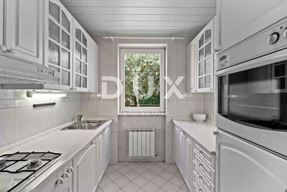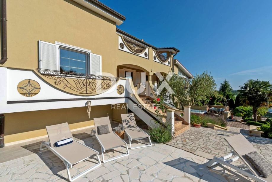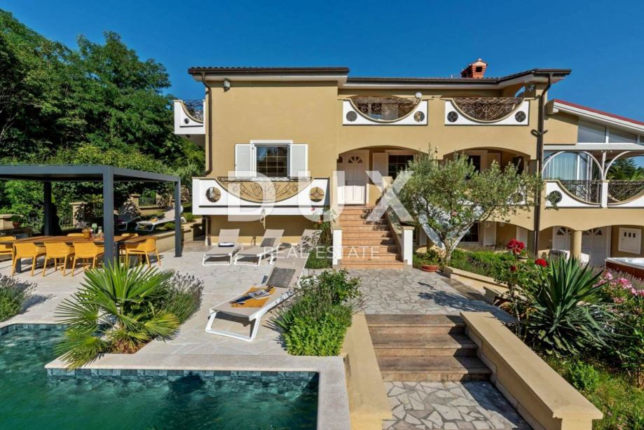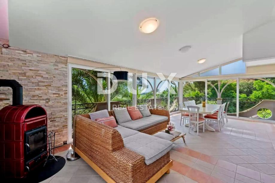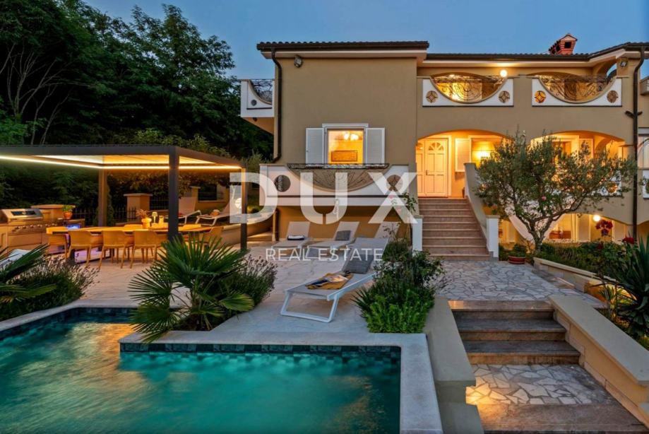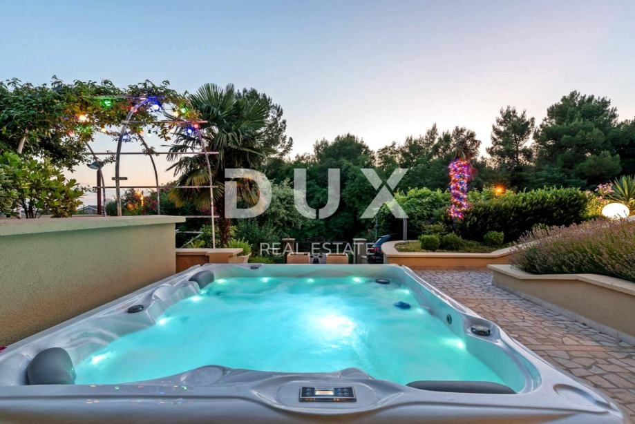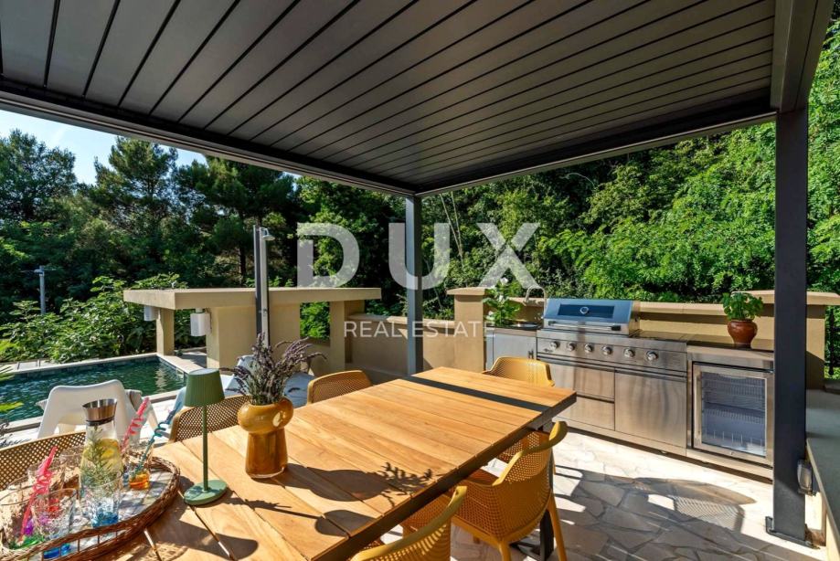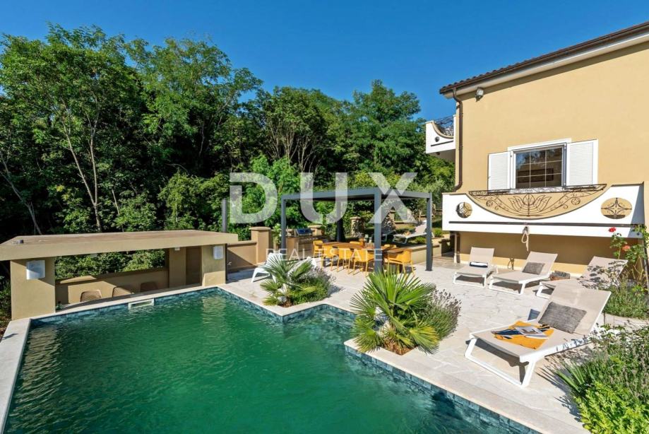 Prostrana okućnica koja obiluje zelenilom i cvijećem i raslinjem je ograđena i uređena do najsitnijeg detalja a savršen sklad zaokružuje bazen sa sunčalištem i elegantno ukomponiranom lounge zonom i natkrivena ljetna kuhinja.