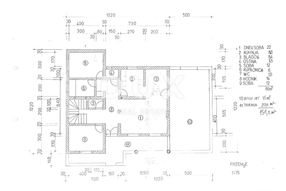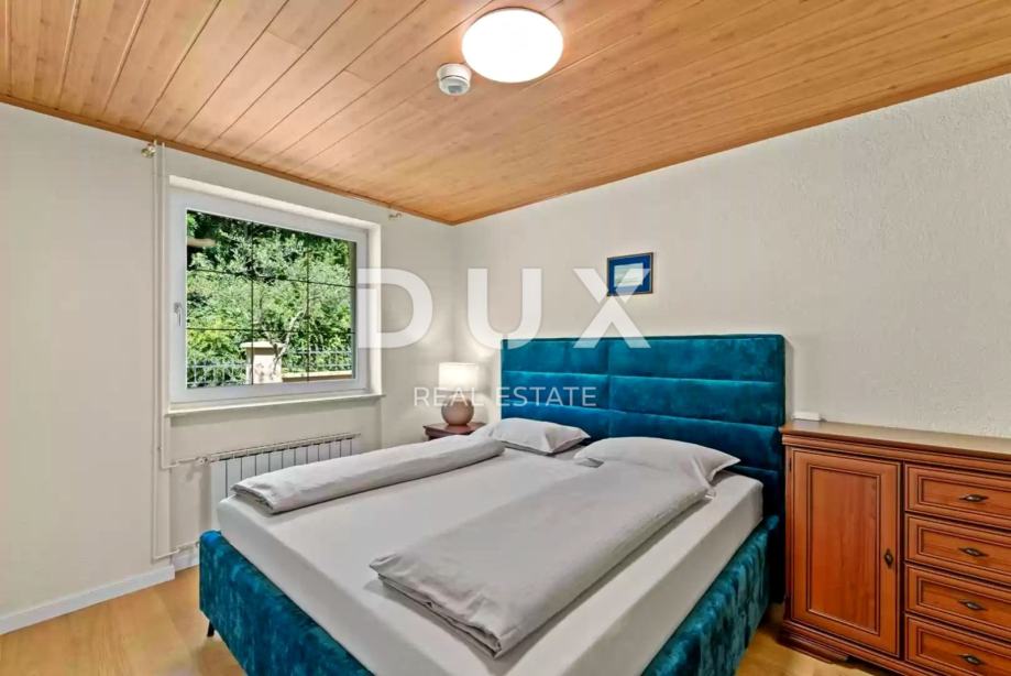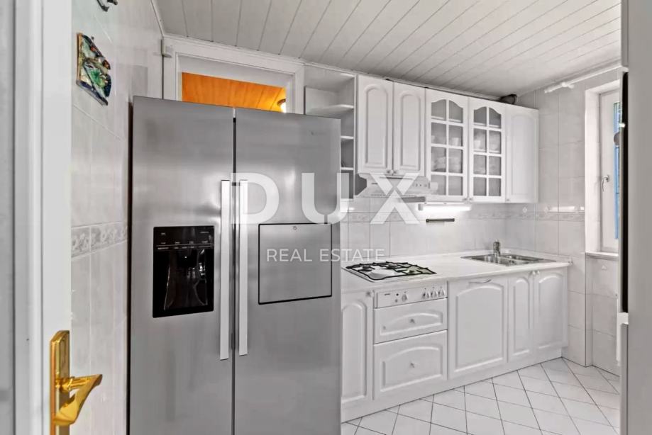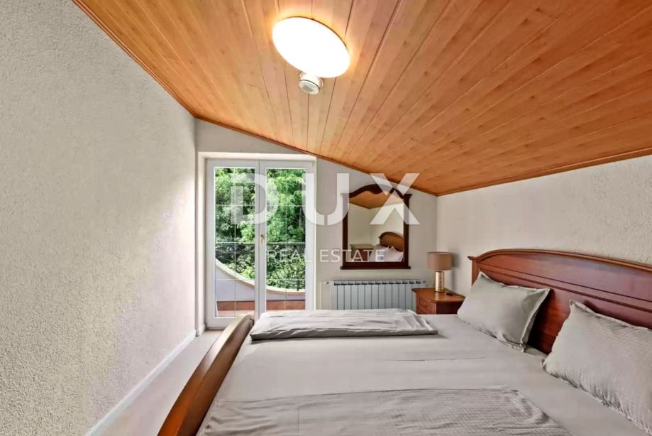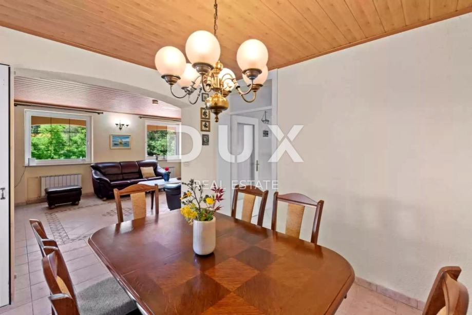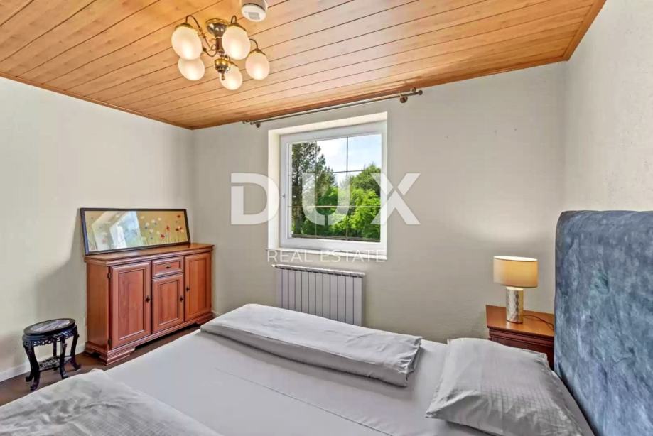 Kroz prizemlje i visoko potkrovlje se proteže dvoetažna stambena jedinica koja se sastoji od kuhinje, blagovaonice i dnevnog boravka s izlazom na prostranu zatvorenu terasu, pet spavaćih soba, dvije kupaonice, gostinjskog toaleta i ostave.