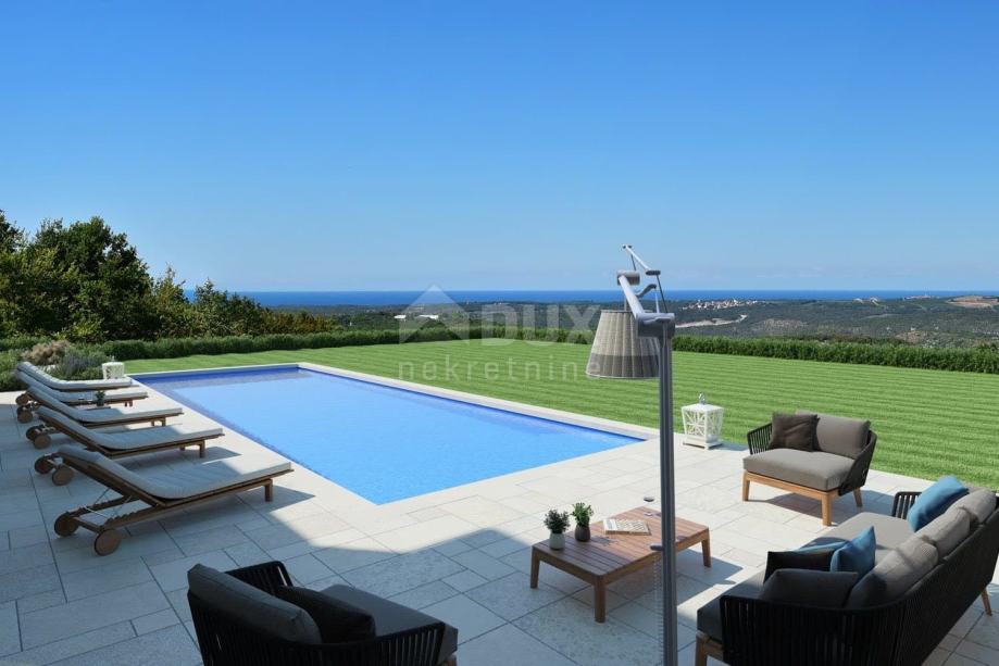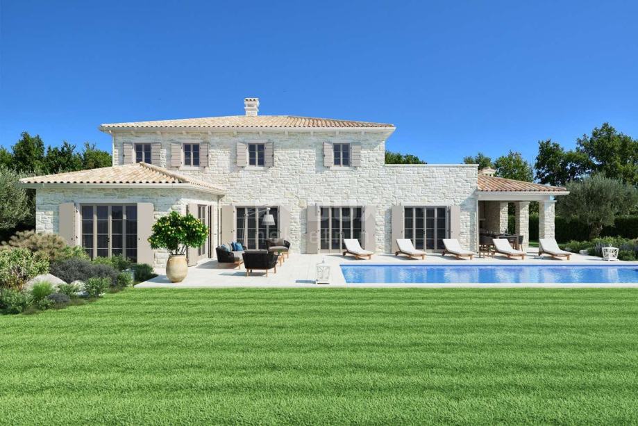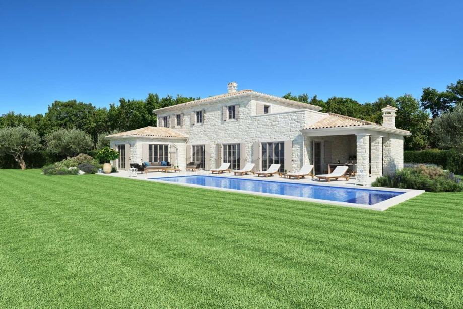 Vila će biti opremljena u kombinaciji s modernim i tradicionalnim detaljima. Vila ima 5 spavaće sobe, 5 kupaonice, kuhinju sa blagovaonom i dnevnim boravkom. Na uređenoj okućnici nalazi se privatni bazen (50 m²) i održavani vrt koji se automatski navodnjava. Uz bazen se nalazi prekrasna veranda, do koje se može doći iz kuhinje. Na verandi se nalazi tradicionalni roštilj, gdje u sjeni sa ugodnim povjetarcem može uživati u opuštajućim večerima i ukusnim objedima. Na ljupkom balkonu na prvom katu također možete uživati u fantastičnom pogledu na čaroban istarski krajolik i more.