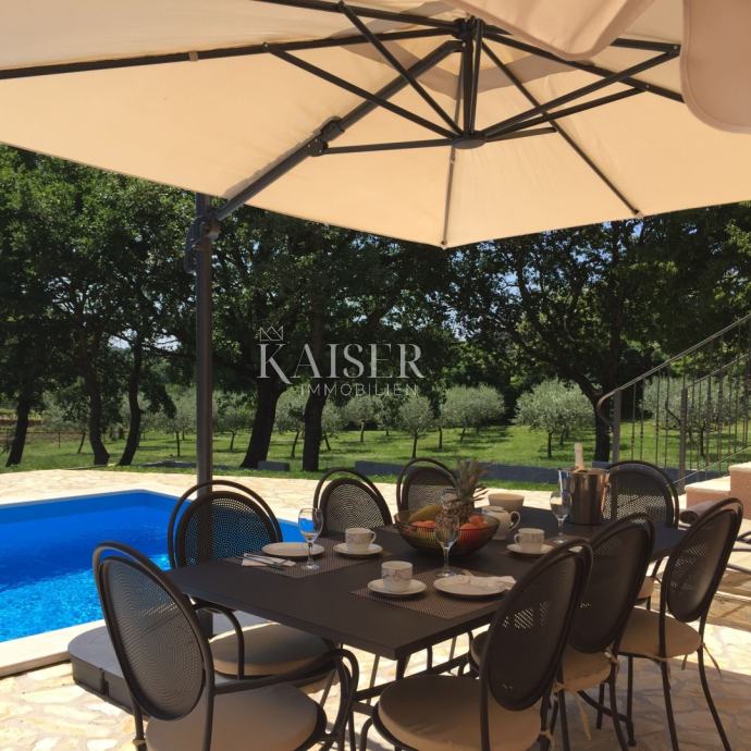 Kaiser Immobilien stavlja u prodaju prekrasnu rustikalnu vilu samo 4 km od mora. Vila se nalazi na svojoj jedinstvenoj parceli, izdvojena od gradske gužve, u maloj sredini nedaleko grada Poreča, točnije samo 6 km od centra grada Poreča.