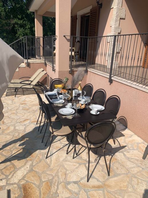 Cijelo dvorište oko vile, tj cijeli vrt u potpunosti su uređeni sa botanikom specifičnom za ovaj kraj Istre, sa prekrasnim travnjakom i prekrasnim biljkama.