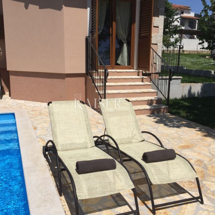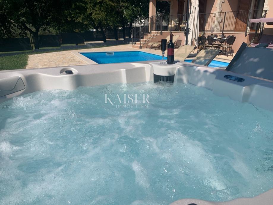 U dvorištu vile nalazi se bazen površine 24 m2, terasa za sunčanje i opuštanje sa vanjskim tušem, jacuzzy za 5 osoba, roštilj, te 3 parkirna mjesta.