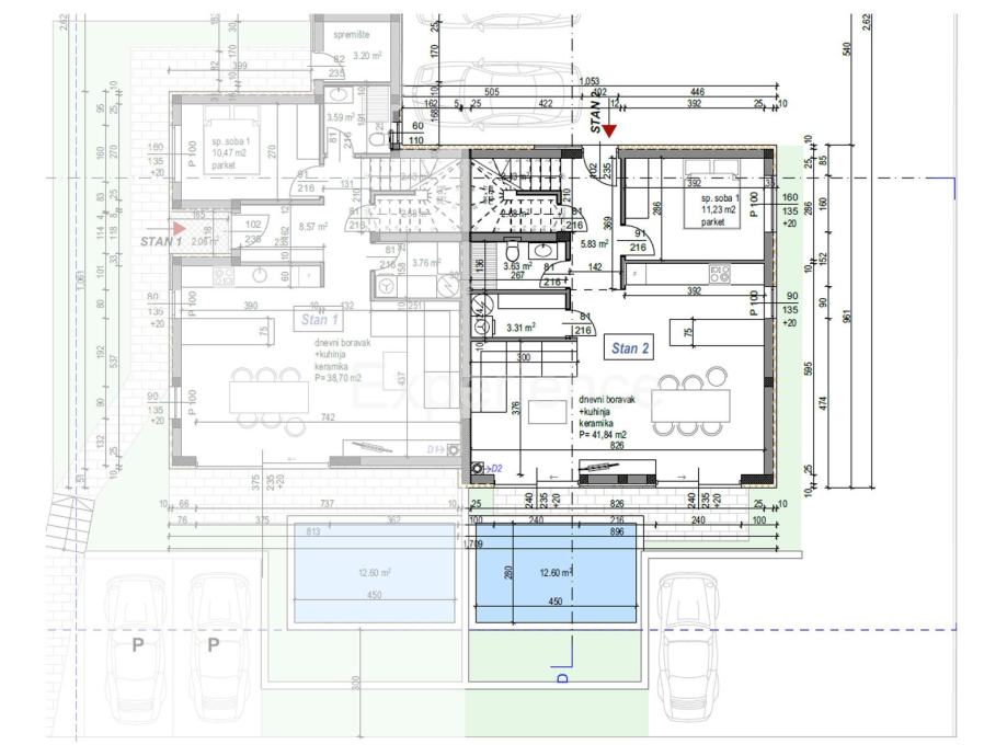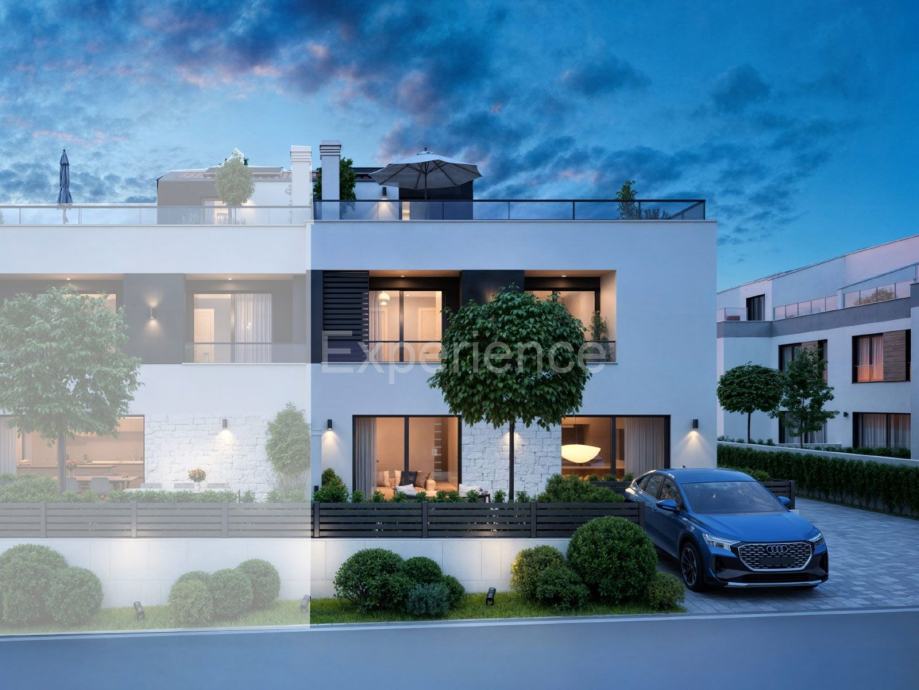 U mirnom, zelenilom okruženom dijelu Poreča, samo 2 kilometra od centra grada i plaže, na prodaji je moderna dvojna kuća u novogradnji, ukupne površine 166,18 m². Prostire se na tri etaže i savršeno kombinira suvremeni dizajn, prozračan prostor i funkcionalan raspored. Zahvaljujući širokim staklenim otvorima i pažljivo planiranom tlocrtu, kuća pruža obilje prirodnog svjetla i osjećaj udobnosti tijekom cijele godine.