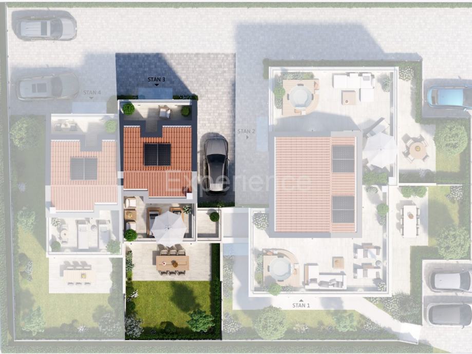 EKSTERIJERUživanje na otvorenom upotpunjuje privatni vrt sa bazenom površine 16,80 m² – idealno mjesto za ljetno osvježenje i opuštanje u privatnosti vlastitog vrta.Kuća će biti opremljena podnim grijanjem i klima uređajima koji osiguravaju ugodnu temperaturu tijekom cijele godine.