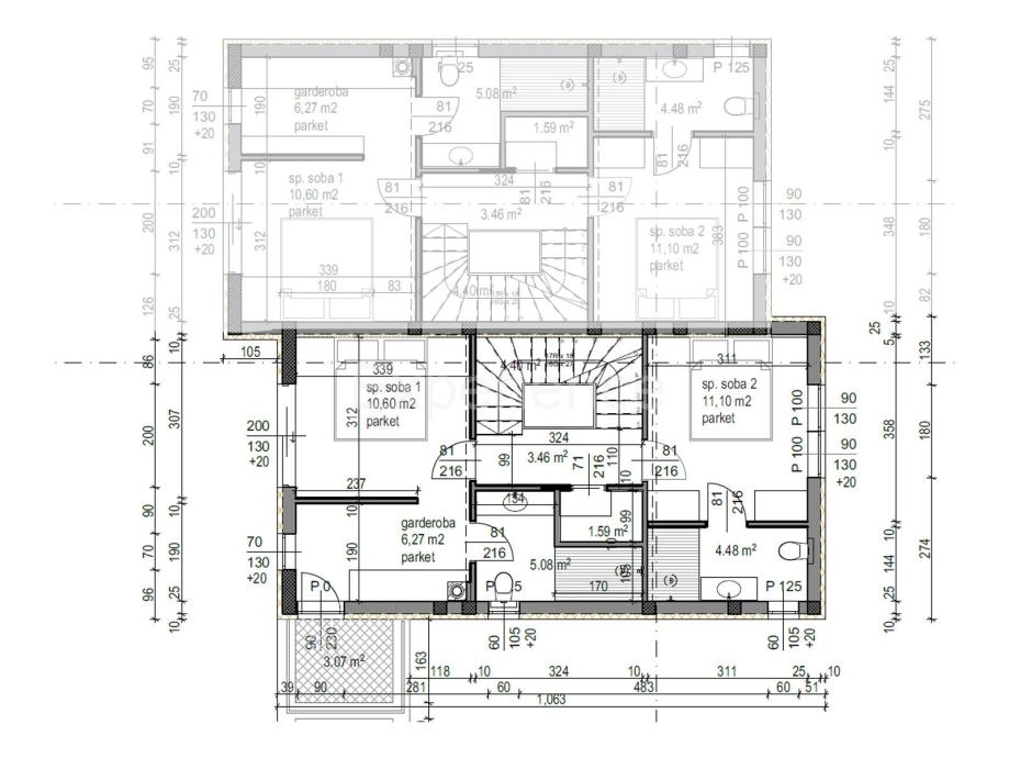 U mirnom, zelenilom okruženom dijelu Poreča, samo 2 kilometra od centra grada i plaže, na prodaji je moderna dvojna kuća u novogradnji, ukupne površine 126,34 m². Prostire se na tri etaže i savršeno kombinira suvremeni dizajn, prozračan prostor i funkcionalan raspored. Zahvaljujući širokim staklenim otvorima i pažljivo planiranom tlocrtu, kuća pruža obilje prirodnog svjetla i osjećaj udobnosti tijekom cijele godine.