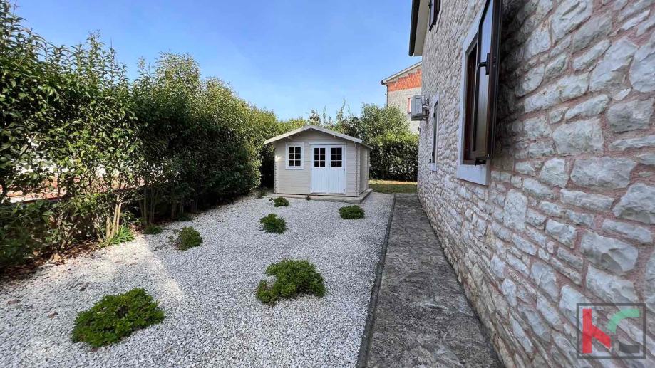Tu se također nalazi i bazen sa popločenim sunčalištem, vrtna kućica sa stražnje strane te s prednje natkriveni parking.