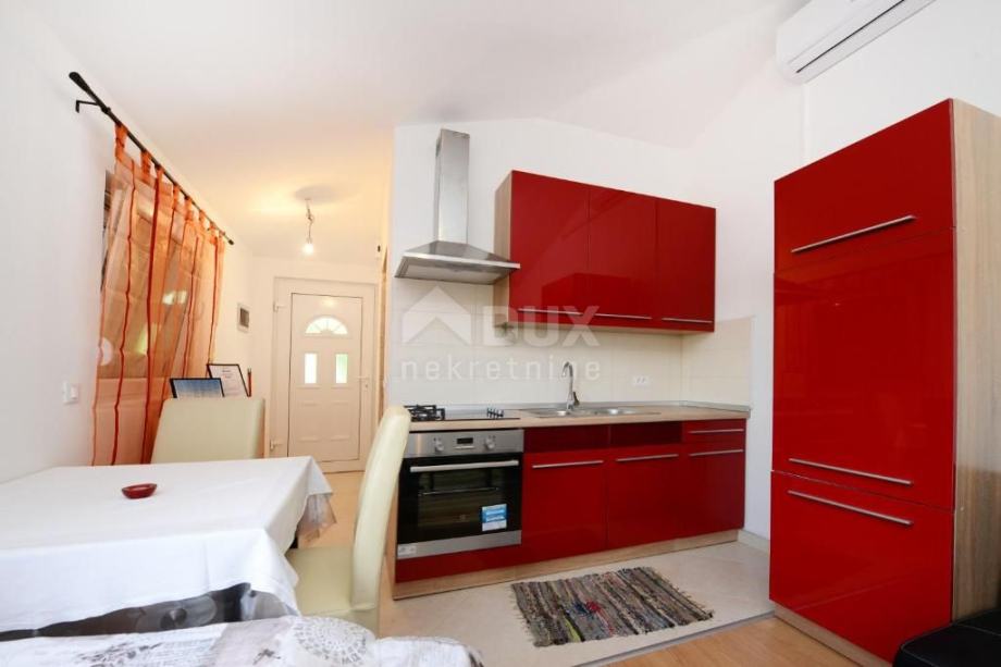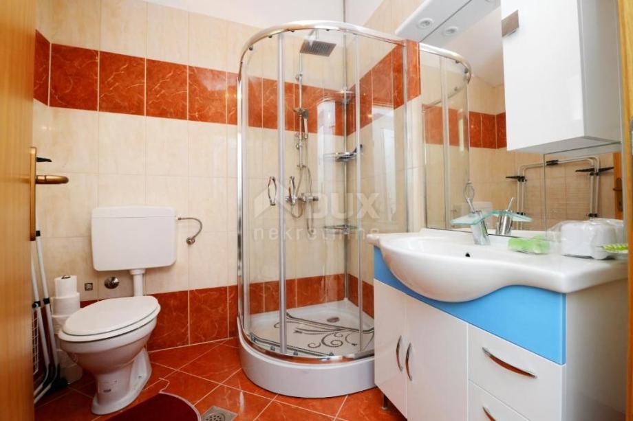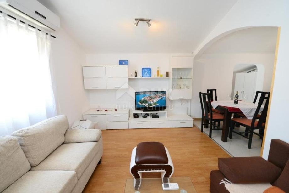Kuća je smještena na zemljištu površine 660 m2 te njena površina iznosi 163 m2. Kuća se prostire kroz dvije etaže. U prizemlju kuće nalazi se jedan apartman koji se sastoji od ulaznog hodnika, kuhinje sa blagovaonom, dnevnog boravka, kupaone te jedne spavaće sobe i predsoblja od kojeg se može napraviti dodatna soba. U nastavku apartmana nalazi se prostrana garaža. Na prvom katu kuće nalazi apartman istog sadržaja i kvadrature kao i apartman u prizemlju, te još jedan studio apartman koji se sastoji od kupaone, kuhinje, blagovaone i dnevnog boravka. Kroz cijeli gornji kat proteže se natkrivena terasa sa pogledom na more i zelenilo.