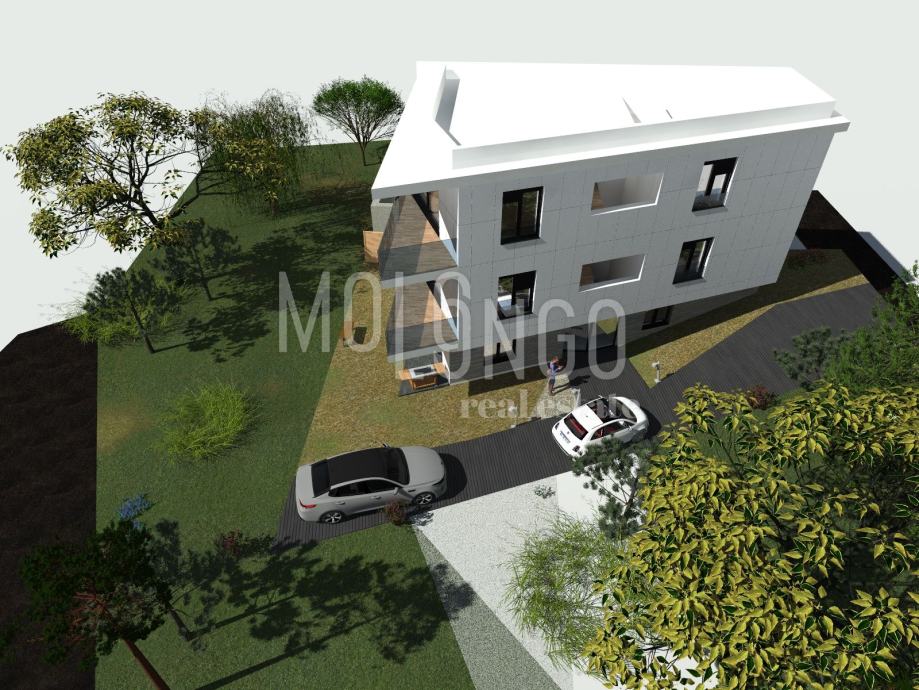 Stan se nalazi na prvom katu stambene zgrade sa samo 5 stambenih jedinica. Površina stana iznosi 53,83 m2 i sastoji se od otvorenog dnevnog dijela u kojem se nalazi dnevni boravak, kuhinja i blagovaona te spavaće sobe i kupaone. Kroz cijeli dnevni prostor ugrađene su staklene stijene kroz koje se izlazi na osunčanu i natkrivenu terasu.
