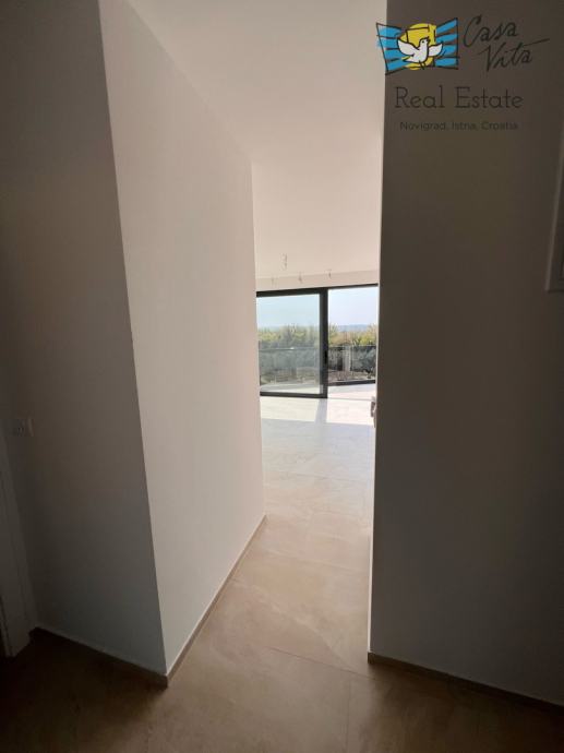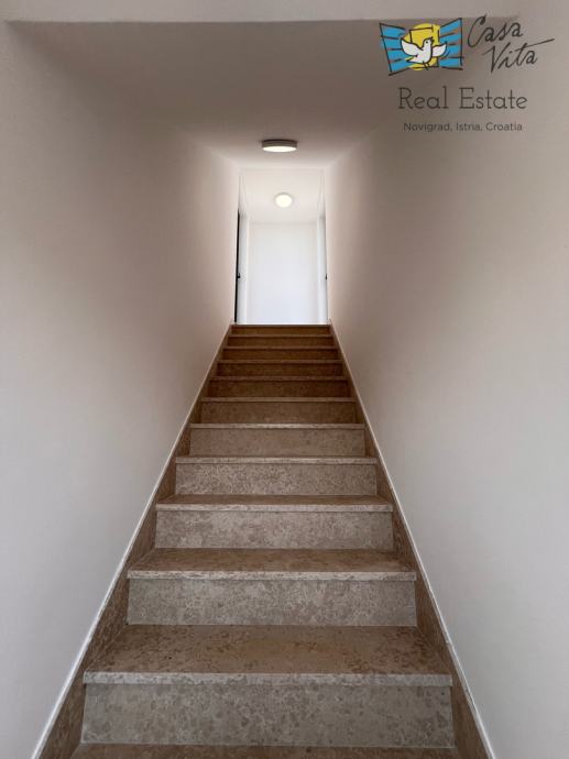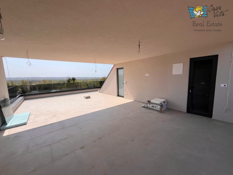 Stan se ističe funkcionalnim rasporedom sa dvije spavaće sobe i jugozapadnom orijentacijom, što osigurava obilje prirodne svjetlosti tijekom cijelog dana. Dodatni komfor pružaju balkon od 7 m2 i krovna terasa od 33 m2 na kojoj se nalaze svi priključci za ljetnu kuhinju, jacuzzi i već opremljen wc. Prostrana terasa idealna je za opuštanje uz lijep pogled na prirodu i more.