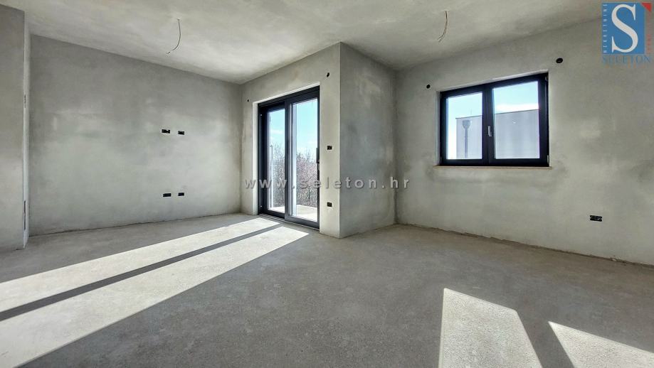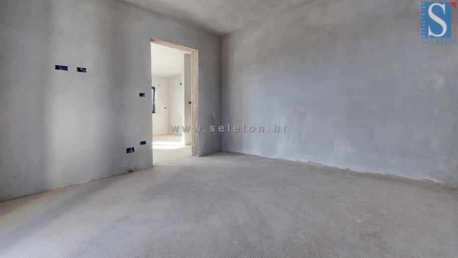 Poreč, u modernoj zgradi sa samo 4 stambene jedinice prodaje se stan u izgradnji površine 73 m², sastoji se od dnevnog dijela, 2 natkrivene terase, hodnika, 2 spavaće sobe i kupatila. Stan se nalazi na prvom katu zgrade, ima podno grijanje na struju, 3 klima uređaja, stanu pripada spremište površine 3 m² i jedno parking mjesto ispred zgrade, udaljen je ca 2 km od mora i ca 3 km od centra grada.