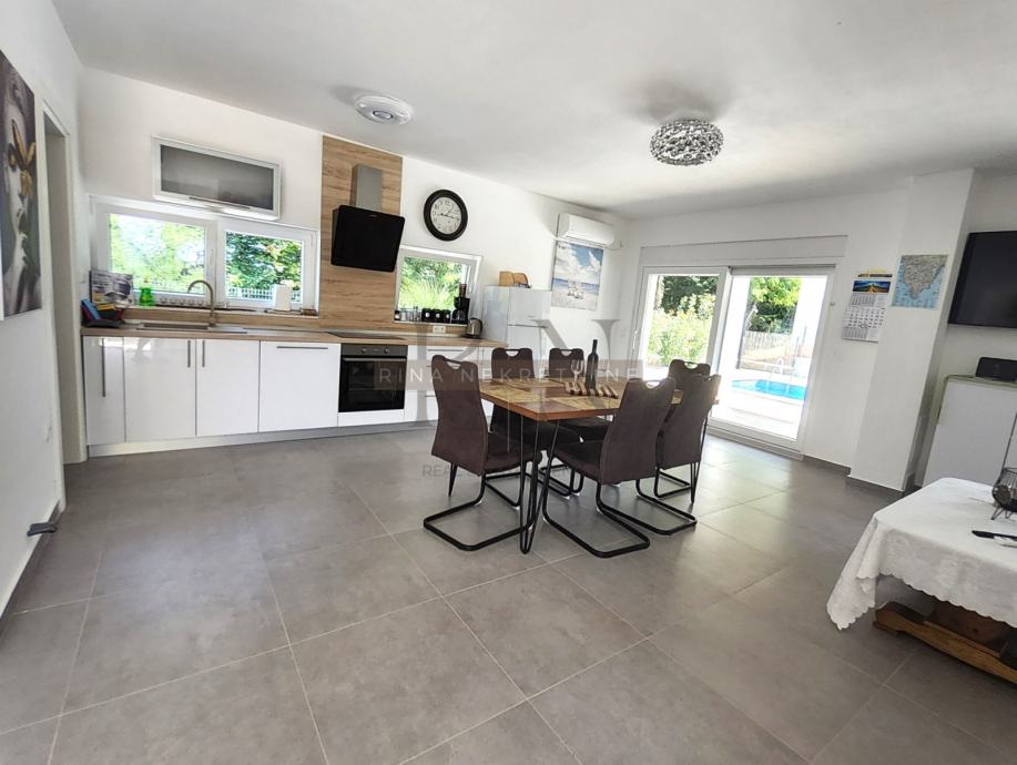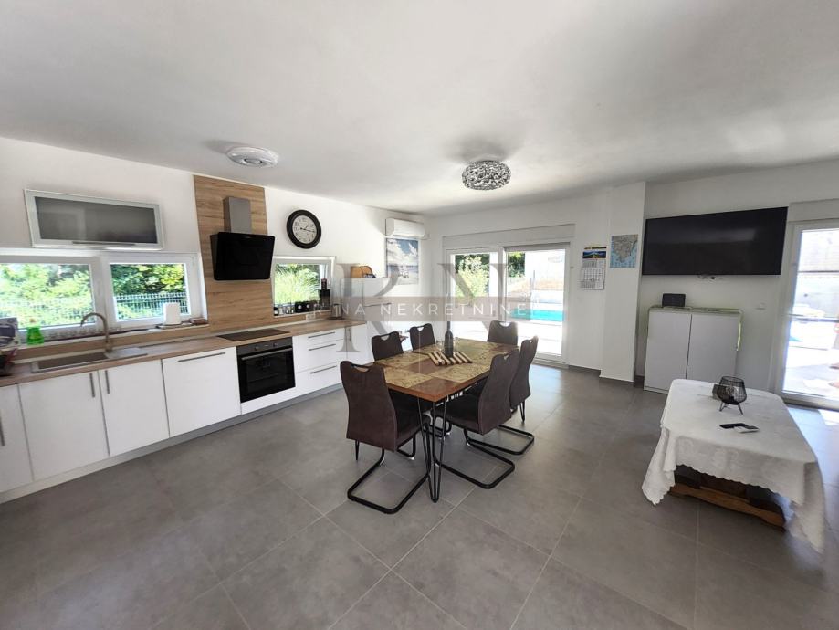 o Open-space kuhinja s blagovaonicom i dnevnim boravkom izlaz na prekrasnu natkrivenu terasu, vrt, bazen
