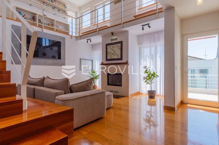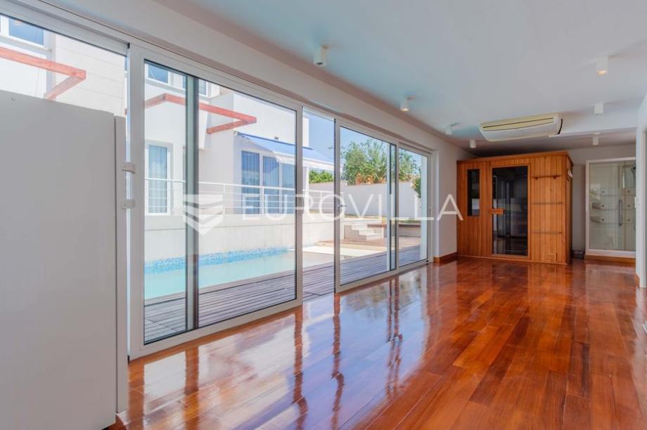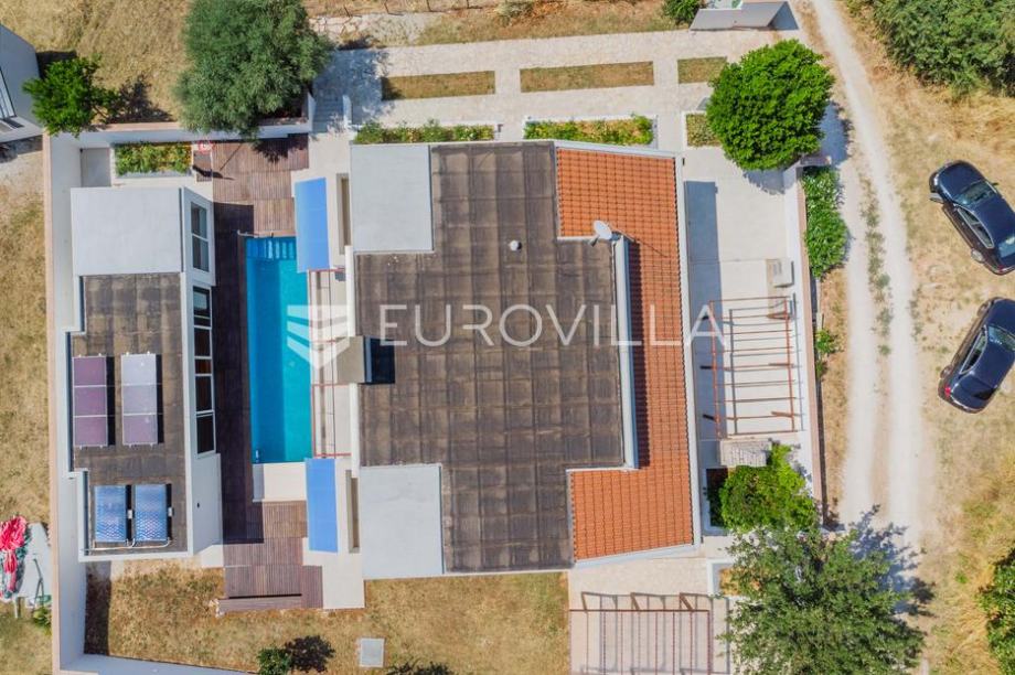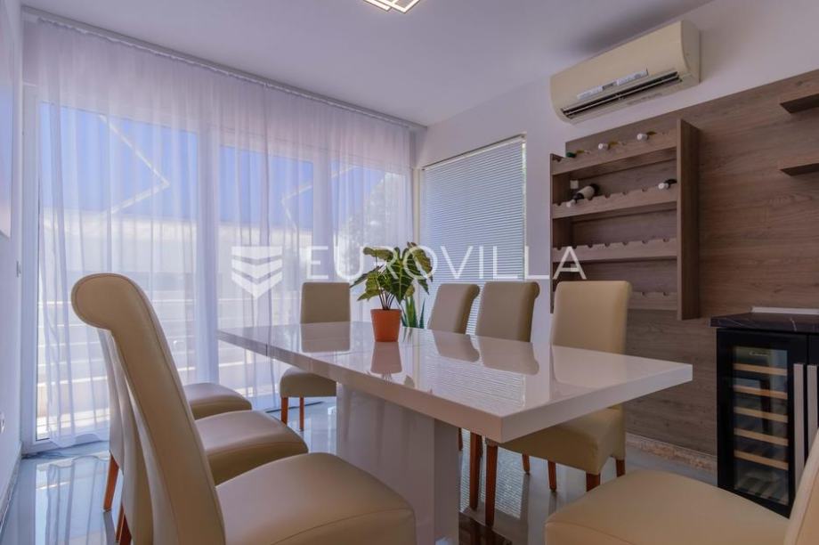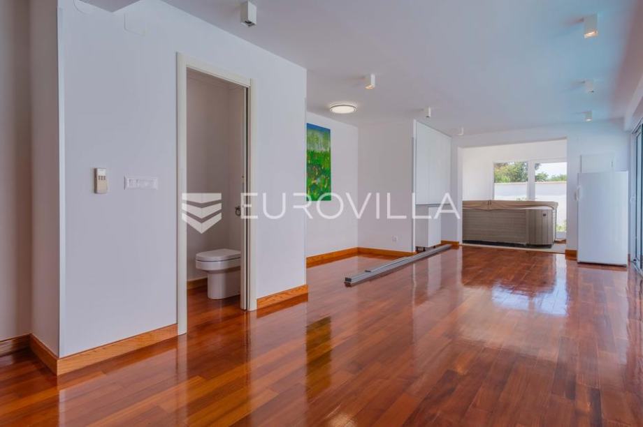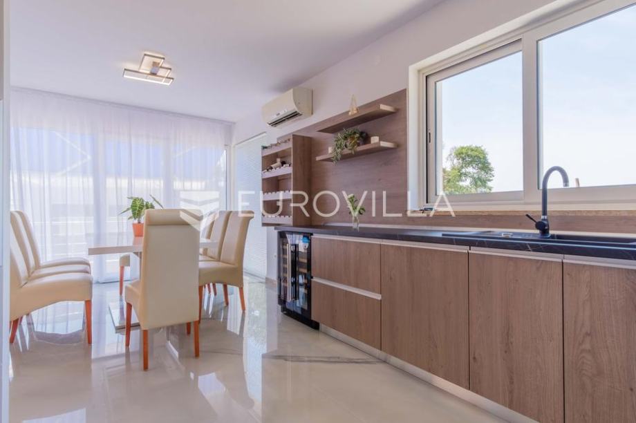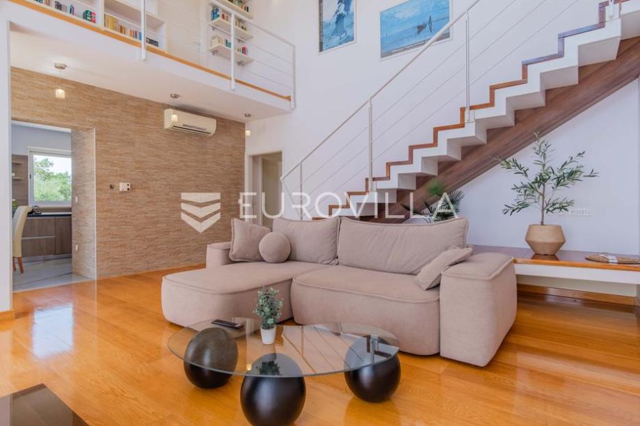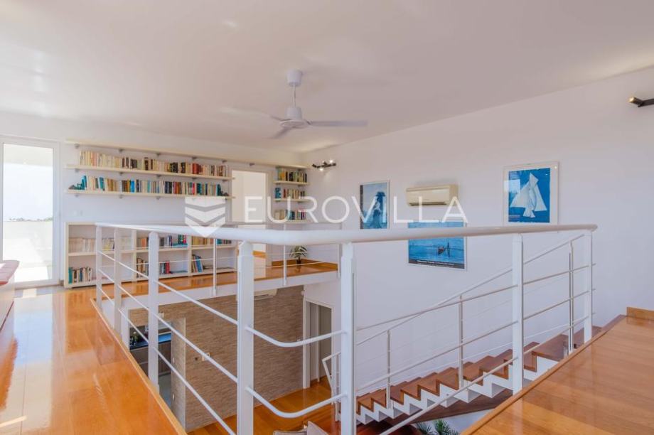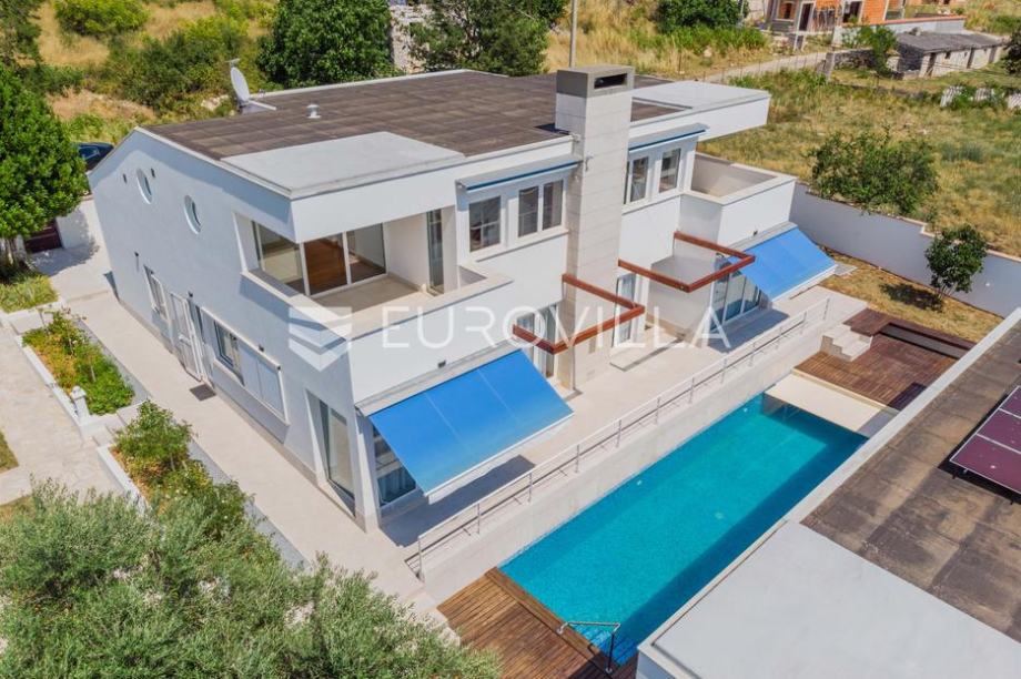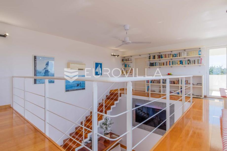 Vila modernog dizajna te luksuznog interijera opremljena je vrlo kvalitetnim materijalima te u 344 m2 pruža idealan raspored prostranih prostorija kao i pogled na more.Proteže se na dva kata pa su se tako u prizemlju smjestili prostrani dnevni boravak kojeg krasi kamin poznate tvrtke Piazzetta,...