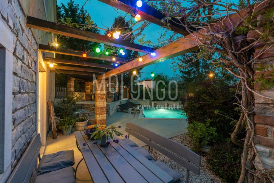 U blizini Poreča, prodajemo kuću s bazenom. Kuća je kompletno renovirana 2023 godine. Sastoji se od kuhinje, blagavaone, dnevnog boravka , četiri spavaće sobe, tri kupaonice. Na uređenoj okućnici se smjestio bazen dimenzije 6x 4 m2, roštilj i privatni parking.