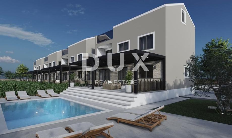 U malenom i mirnom mjestu koje odiše prirodom i tišinom te gdje u svako doba dana možete čuti cvrkut ptica, a opet svega 11km udaljeno od centra grada Poreča i njegovih prvih plaža te svega nekoliko minuta vožnje autom do istarskog ipsilona nudimo Vam kuću u nizu, odnosno prvu u nizu sa bazenom na tri etaže.