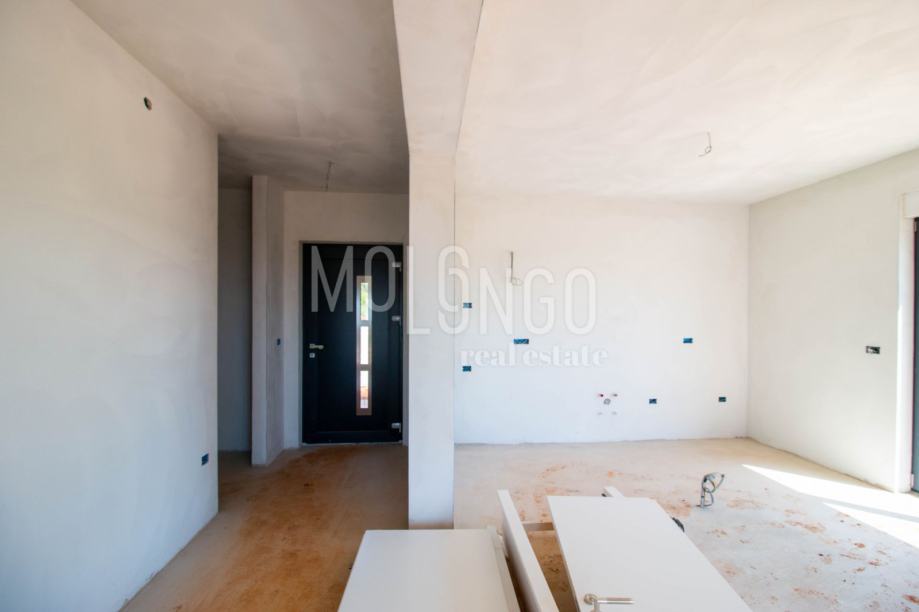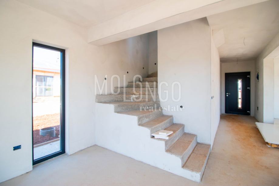 U prizemlju se nalazi ulazni hodnik, ostava od 8m2, wc te prostrani dnevni boravak i kuhinja i blagovaonica. Iz dnevnog boravka i blagavaonice ide se na natkrivenu terasu koja vodi do predivnog bazena površine 40 m2, okruženog sunčalištem idealnim za opuštanje.
