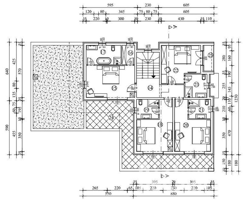 Projektirana je kao komforna samostojeća kuća s jednom stambenom jedinicom koja se proteže kroz prizemlje i prvi kat.