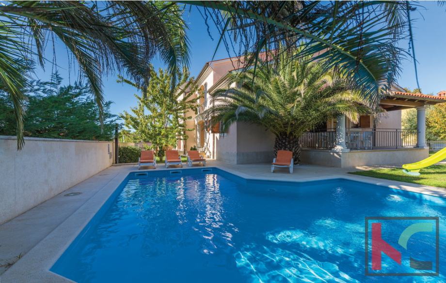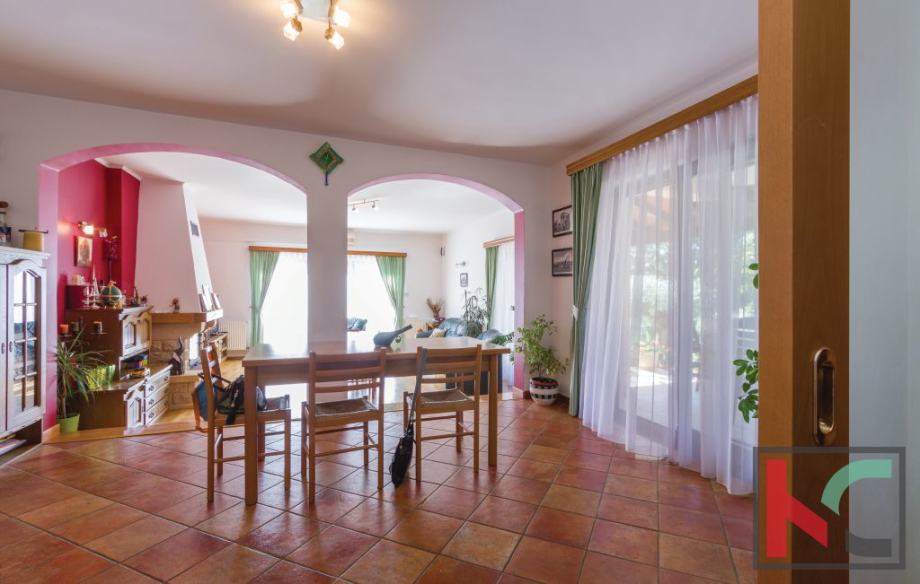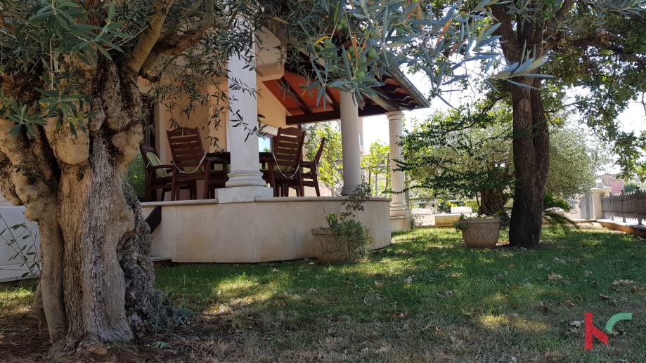Uredno održavana okućnica čija površina iznosi 884m2 nudi kompletan mir i privatnost te je upotpunjuje uživanje u velikom bazenu od 36m2.