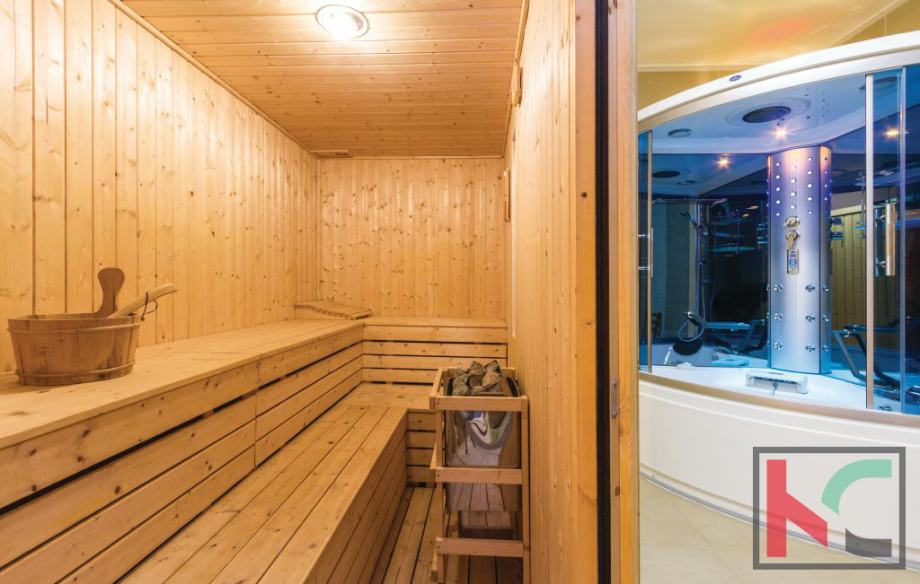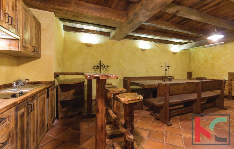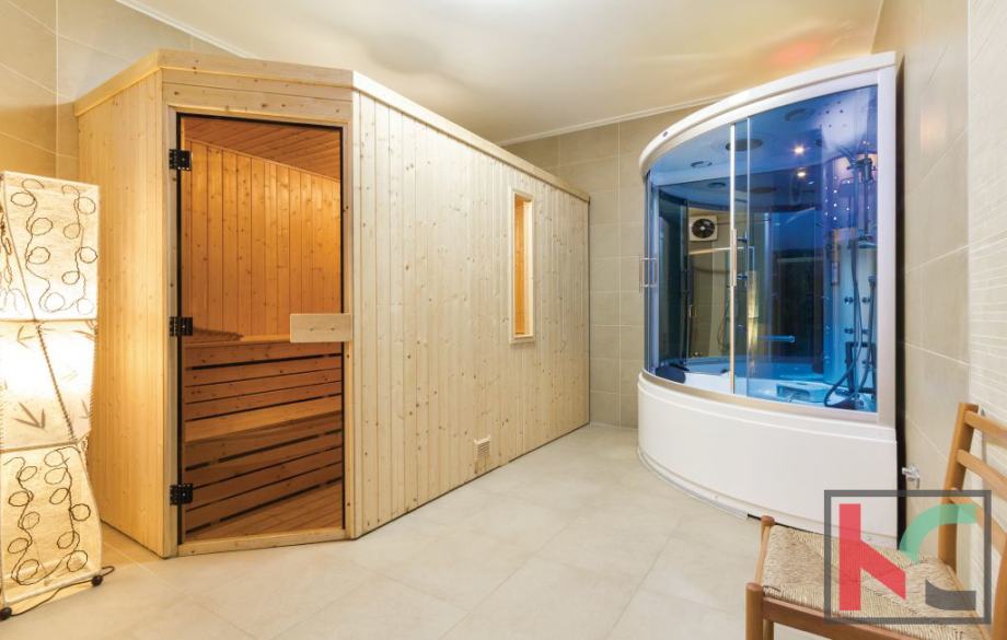 Villu upotpunjuje i atraktivna konoba sa velikim kaminom koja je opremljena sa puno pažnje i idealna je za zajedničke večeri uz dobro društvo, konoba je povezana stubištem te s apartmanom u prizemlju. Od dodatnih sadržaja objekt nudi i relax zonu za uživanje sa saunom i jacuzzijem.