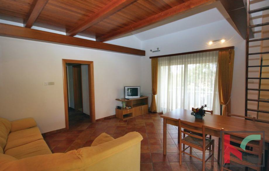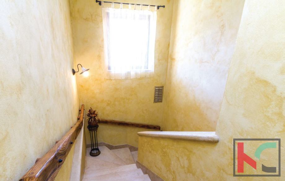 Ova atraktivna nekretnina podijeljena je na četiri smještajne jedinice, koje su u potpunosti opremljene. U prizemlju objekta se nalazi glavni i najveći apartman sa prostranim dnevnim boravkom, komfornom kuhinjom i spavaćim sobama svaka sa svojom kupaonicom, apartman u prizemlju objekta je spojen sa jednim manjim apartmanom sa posebnim vanjskim ulazom koji ima spavaću sobu na prvom katu. Druge dvije smještajne jedinice nalaze se na katu do kojih vode vanjsko stubište. Svaka smještajna jedinica raspolaže svojom kuhinjom i dnevnim boravkom te jednom terasom, centralnim sustavom je riješeno grijanje dok za hlađenje objekt je opremljen klima uređajima.