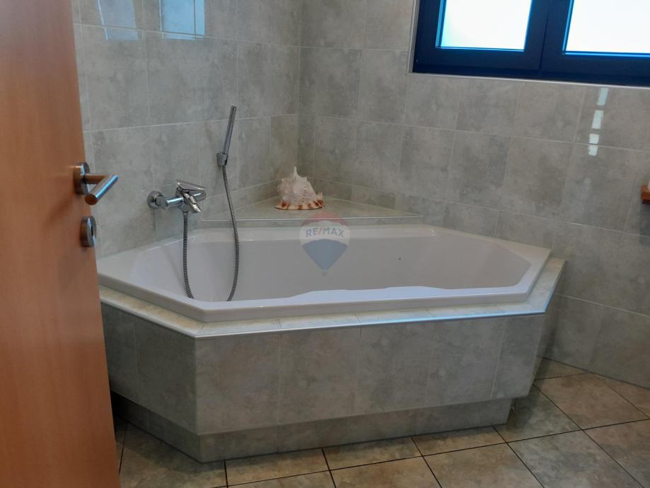 Na prvom katu (110 m2) nalaze se : 3 spavaće sobe, 2 kupatila, jedna mala namjenska prostorija, hodnik ,stepenište i velika terasa sa pogledom na more