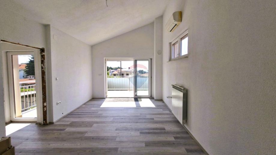 Na prvom katu kuće nalazi se još jedan stan površine 76.47 m2 koji ima jednu spavaću sobu, kupaonu, dnevni dio u kojem je kuhinja, blagovaona i dnevni boravak s izlazom na terasu s koje se pruža pogled na more.