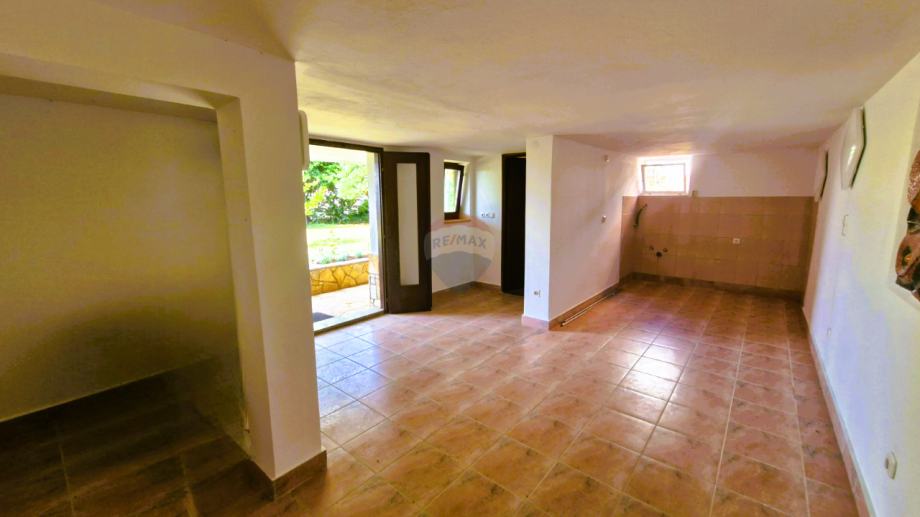 U suterenu kuće nalazi se otvorena prostorija s već postavljenom instalacijom za kuhinju i odvojeni toalet ukupne površine 30 m2
