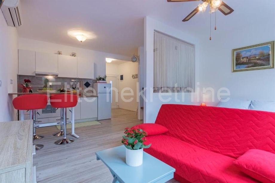 124 m² stambenog prostora podijeljeno je u tri stambene jedinice. Jedan dvosoban stan sa terasom, jedan jednosobni stan s izlazom na veću terasu i jedan studio.