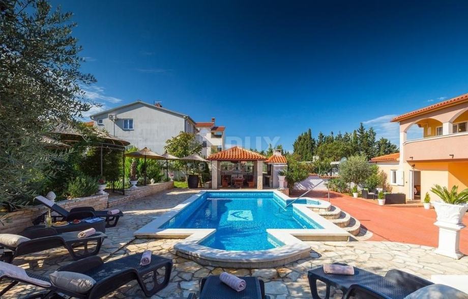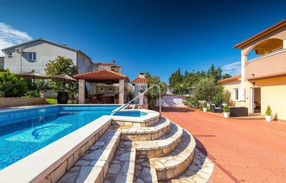 Pristupom okućnici kroz električnu kapiju, uz pomoć asfaltirane ceste, nalazi se parking dovoljan za 3 do 4 automobila. Centralni dio okućnice zauzima prostrani bazen sa sunčalištem uz kojega se smjestila i ljetna natkrivena terasa s roštiljem i ljetnom kuhinjom. Cijela je okućnica vila ograđena i idealna je za druženje i zabavu s prijateljima i obitelji, kao i za bezbrižnu zabavu vaših najmlađih članova obitelji i kućnih ljubimaca.