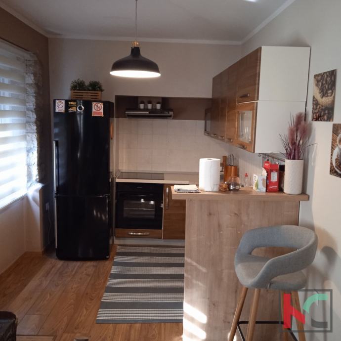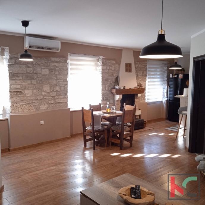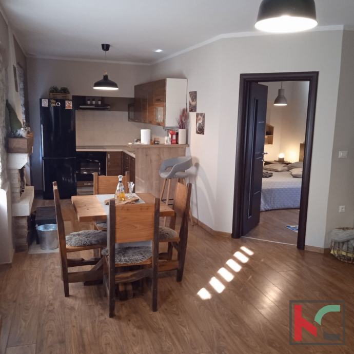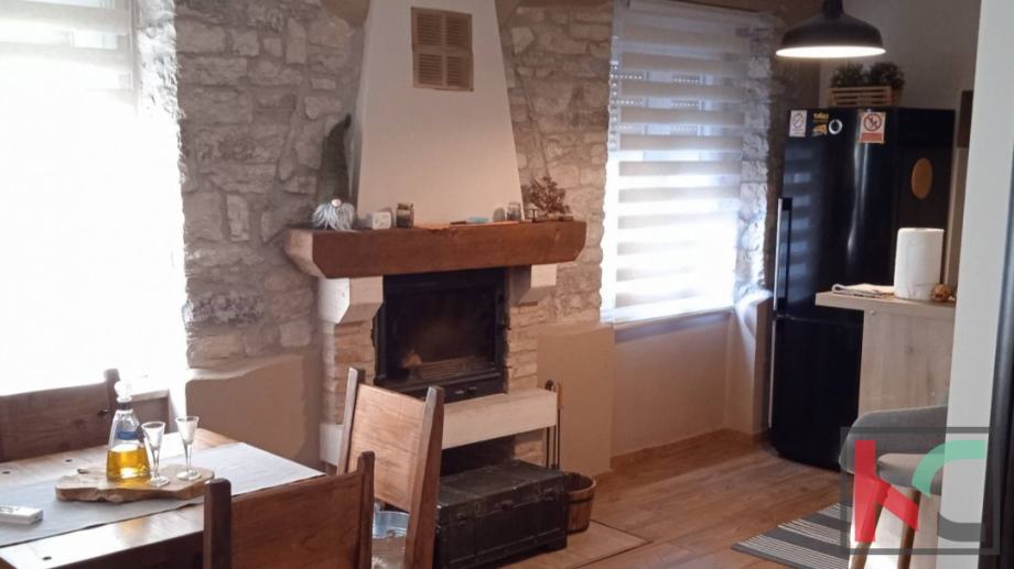 Nekretnina se sastoji od "open space" kuhinje s blagovaonicom u komunikaciji sa dnevnim boravkom sa kaminom, jedne spavaće sobe te kupaonice.,Ostava se nalazi u prizemlju.