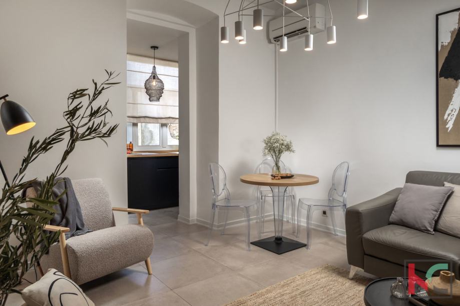 Prodaje se kompletno moderno i dizajnerski uređen stan u samom centru Pule, nadomak svih bitnih životnih sadržaja.