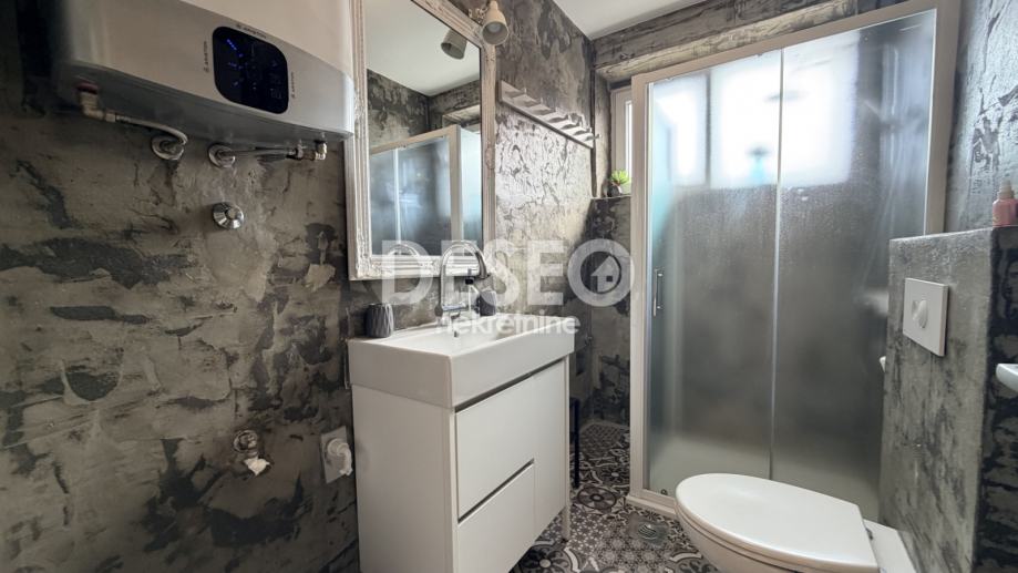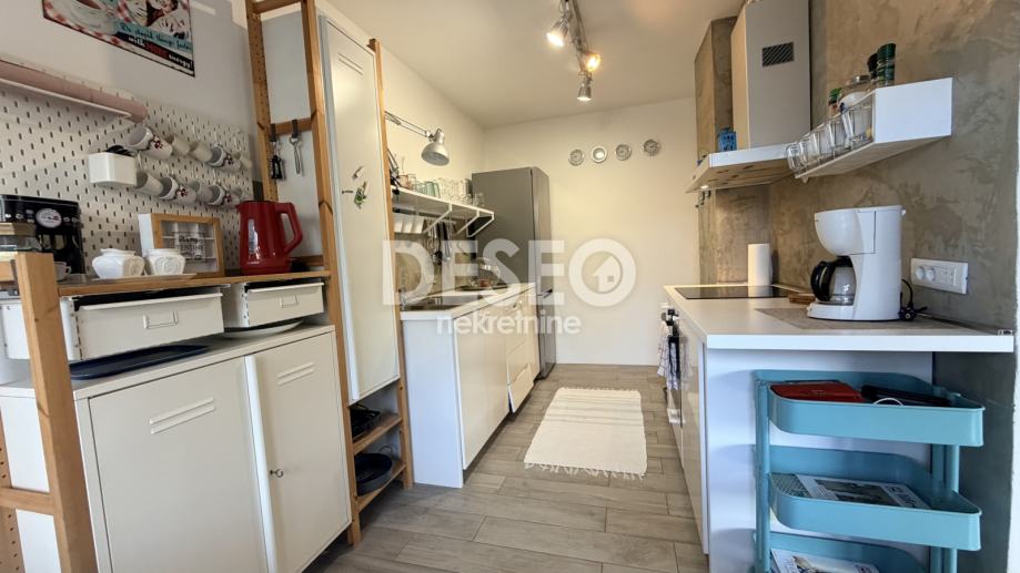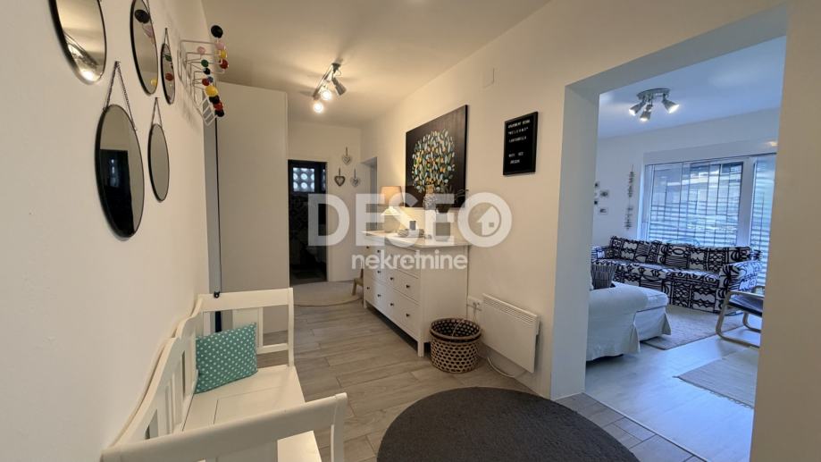 Stan se sastoji dva predsoblja, prostranog dnevnog boravka, kuhinje s blagovaonom, tri spavavaće sobe, dvije kupaone, velike terase, šupe, garaže i jednog parkirnog mjesta. U potpunosti je adaptiran! Grijanje je na norveške radijatore + tri klima uređaja, a plin je doveden do stana pa ukoliko netko želi dodatno centralno grijanje ima i tu mogućnost.