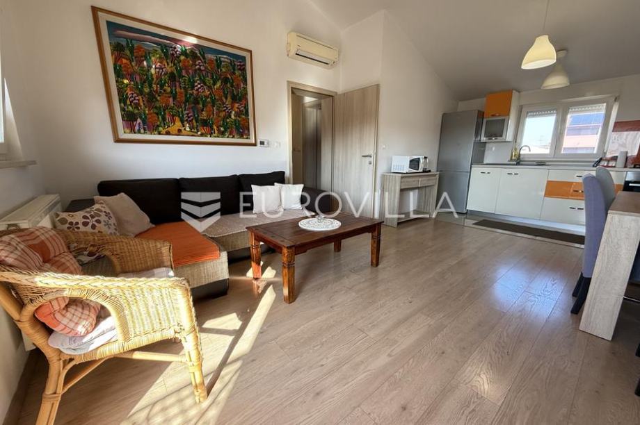 Pula, Valmade; long-term rental of a furnished three-bedroom apartment located in a smaller, recently built residential building. It is located on the 2nd floor, it is also the only apartment on the floor, with an area of 50.33 m2 and consists of: entrance hall, two bedrooms, bathroom, open space...