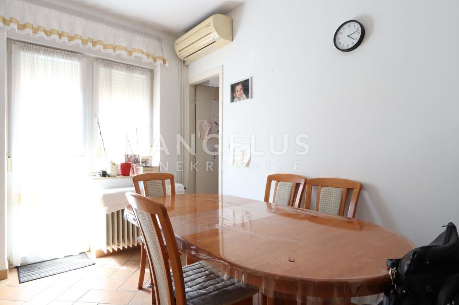 OPIS: Riječ je o dvosobnom stanu na prvom katu stambene zgrade nadomak centra grada na poznatom pulskom brdu Monte Zaro. Stan se sastoji od velikog ulaznog hodnika sa prozorom, dvije spavaće sobe (od kojih je jedna zaista velika), kupaonice, toaleta, kuhinje, izbe i velikog dnevnog boravka. Gotovo svaka od spomenutih prostorija ima izlaz na veliku lođu koja se prostire u kompletnoj širini stana. Stan posjeduje plinsko centralno grijanje sa kotlovnicom odvojenom vratima, također u stanu je i klima uređaj. Orijentacija stana je na zapad te hodnik na istočnu stranu. Prodaje se namješten ili po dogovoru.