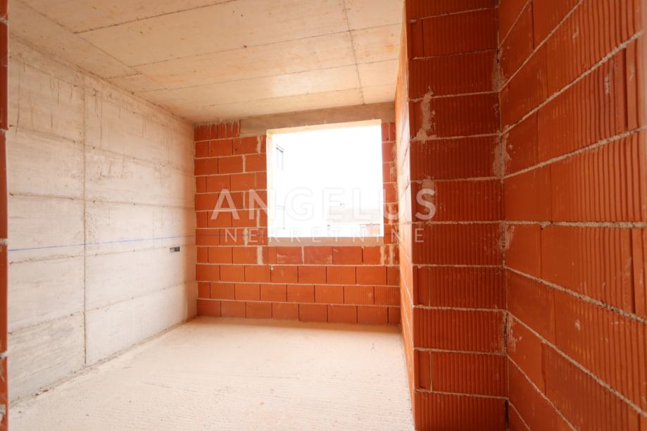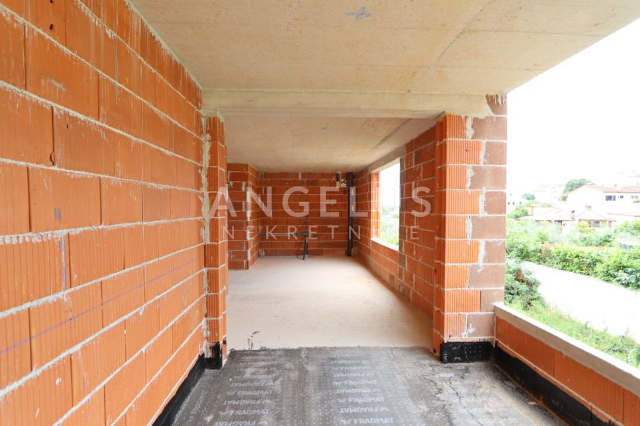 OPIS: Stan od 54,31 m2 se nalazi na katu kvalitetne novogradnje u izgradnji sa 4 stana. Stan se sastoji od ulaza, hodnika s garderobom, dnevnog boravka kuhinje i blagovaonice površine 20 m2, dvije spavaće sobe te kupaonice. Iz dnevnog boravka se pristupa velikoj natkrivenoj terasi koja je omeđena zatamnjenim kaljenim staklom. Stan je iznimno dobro orijentiran jug-jugozapad te zbog toga ima prilično dobru osunčanost tijekom cijele godine.