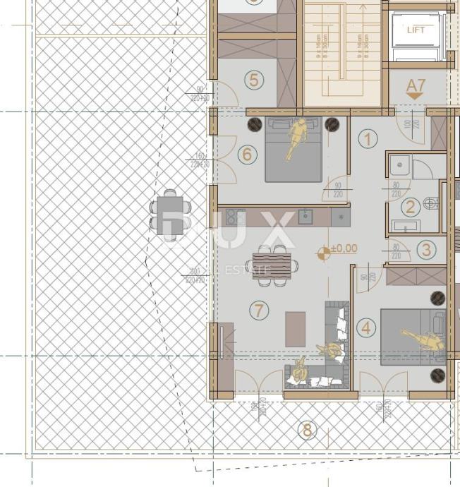 Jedna od posebnosti ove nekretnine je 80m2 natkrivene terase te garažno parkirno mjesto koje nije uračunatu u kvadraturu stana.