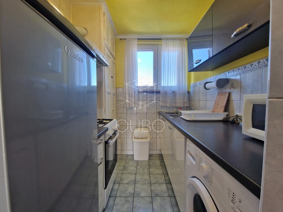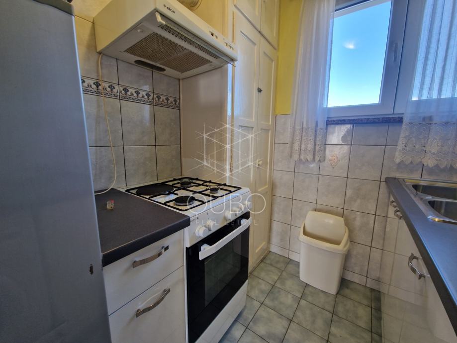 Na četvrtom, ujedno i posljednjem katu zgrade iz 1962. godine, smješten je stan površine 50 m² koji kombinira funkcionalan raspored i odličnu lokaciju. Stan se sastoji od dnevnog boravka s blagovaonicom, kuhinje, dvije spavaće sobe, hodnika, kupaonice i balkona.