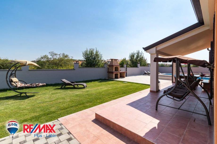 Ograđena okućnica nudi bazen s terasom za sunčanje, vrtni namještaj, roštilj s opremom i stolni tenis.